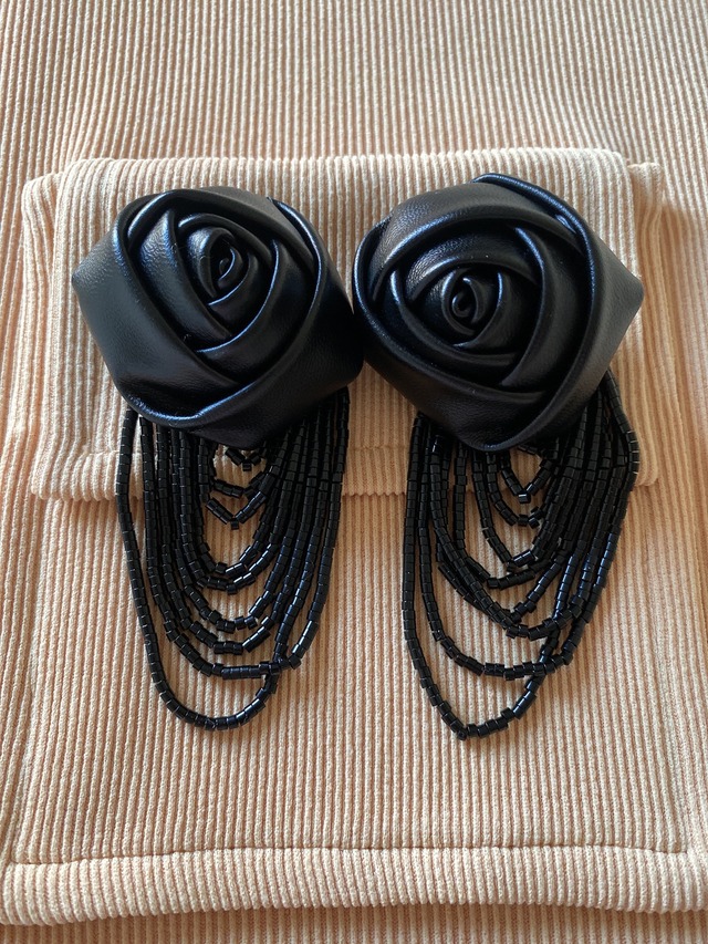 Fake leather rose ×beads tassel mini hair clip(2つset)