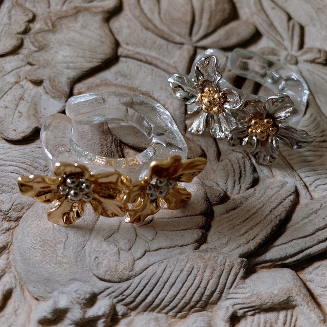 Acryl silver flower サージカルステンレスピアス/ネジ式イヤリング