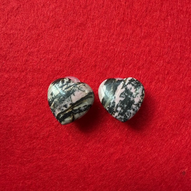 Rhodonite stone heart サージカルステンレスクリップイヤリング