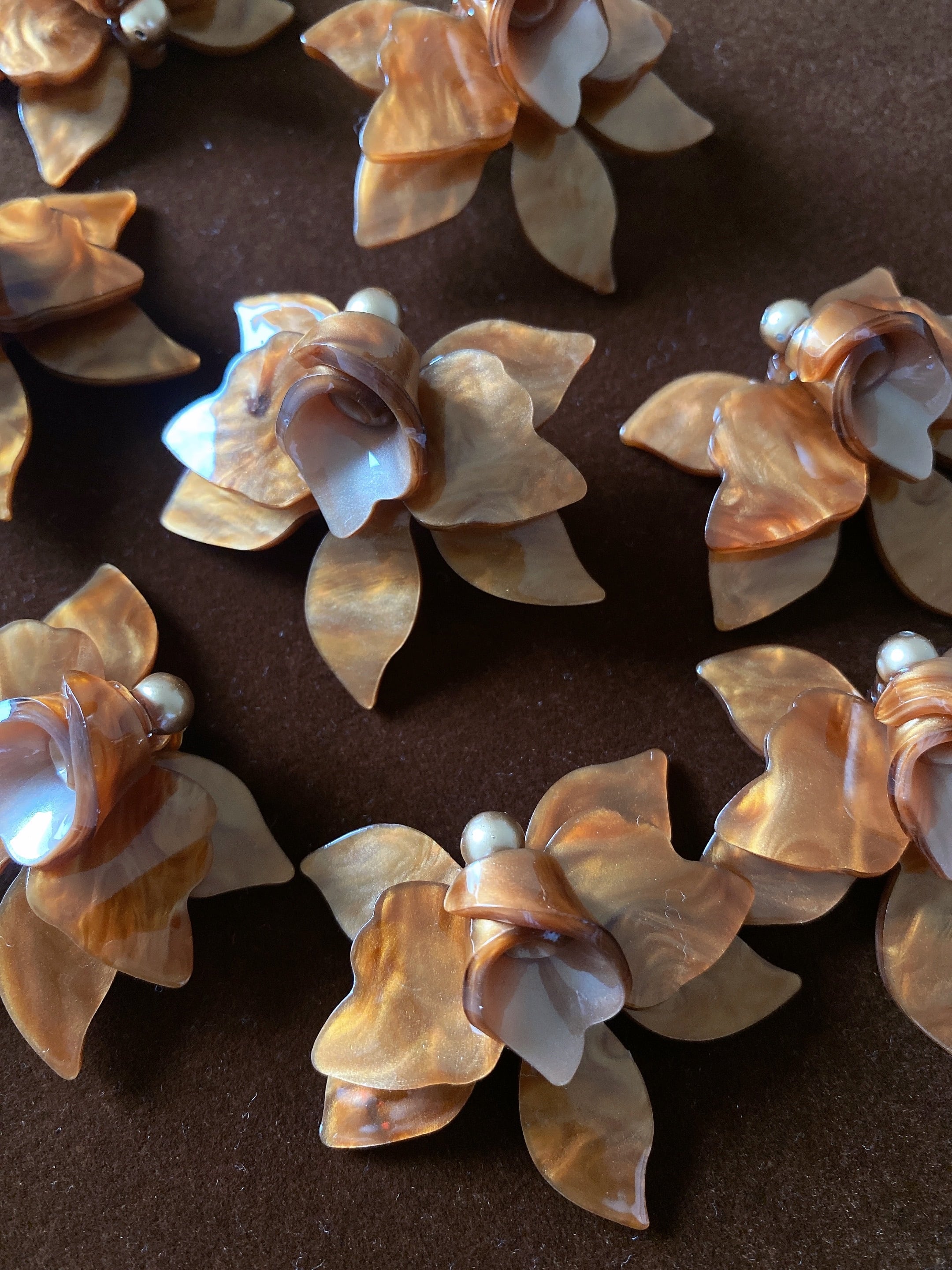 (Brown)Acryl shell flower motif サージカルステンレスピアス/クリップイヤリング