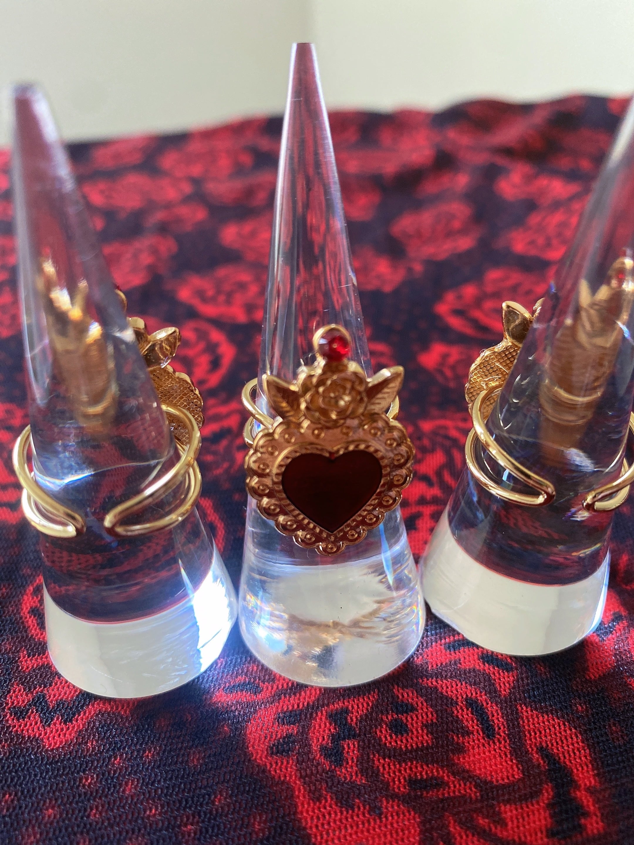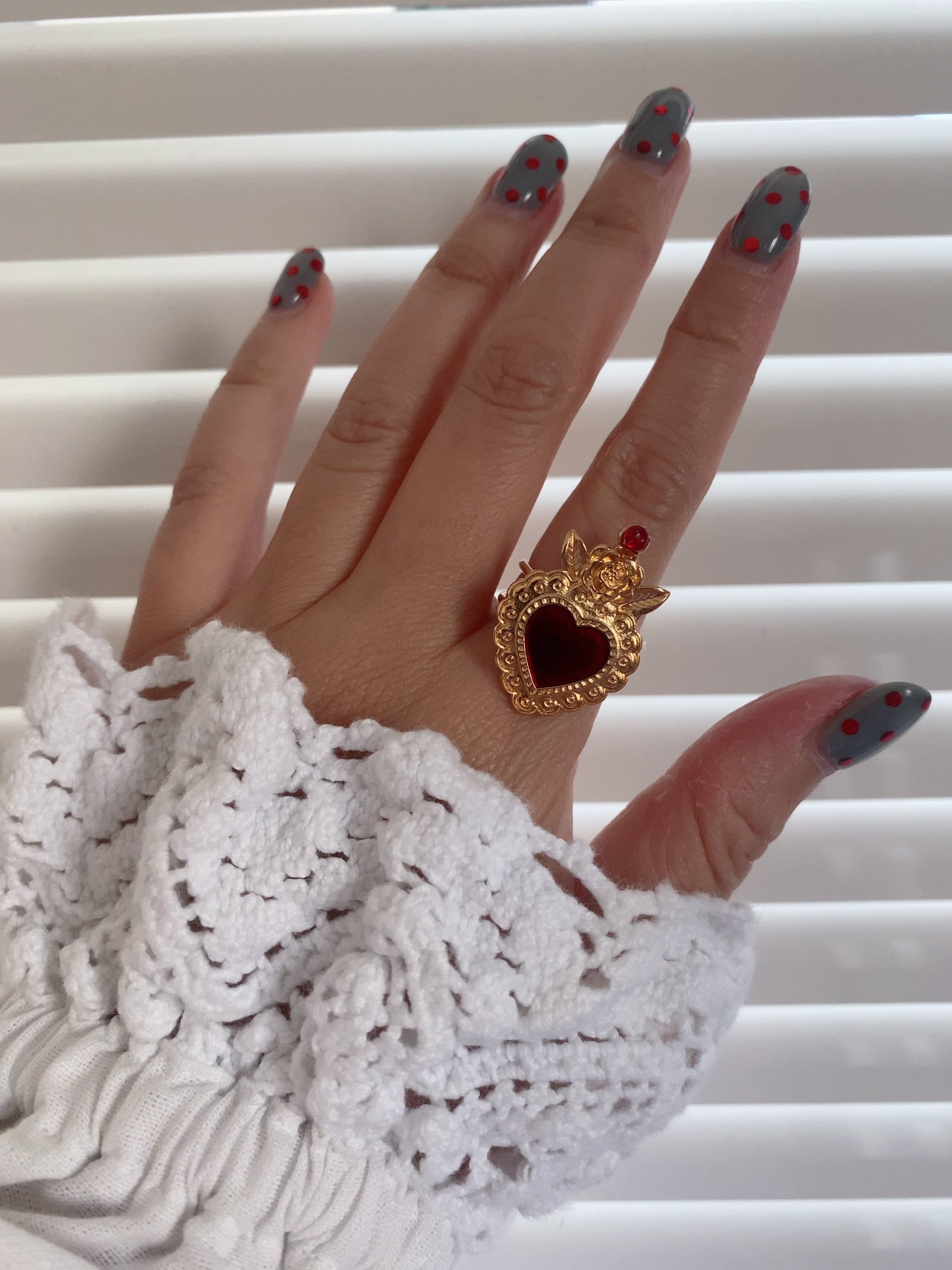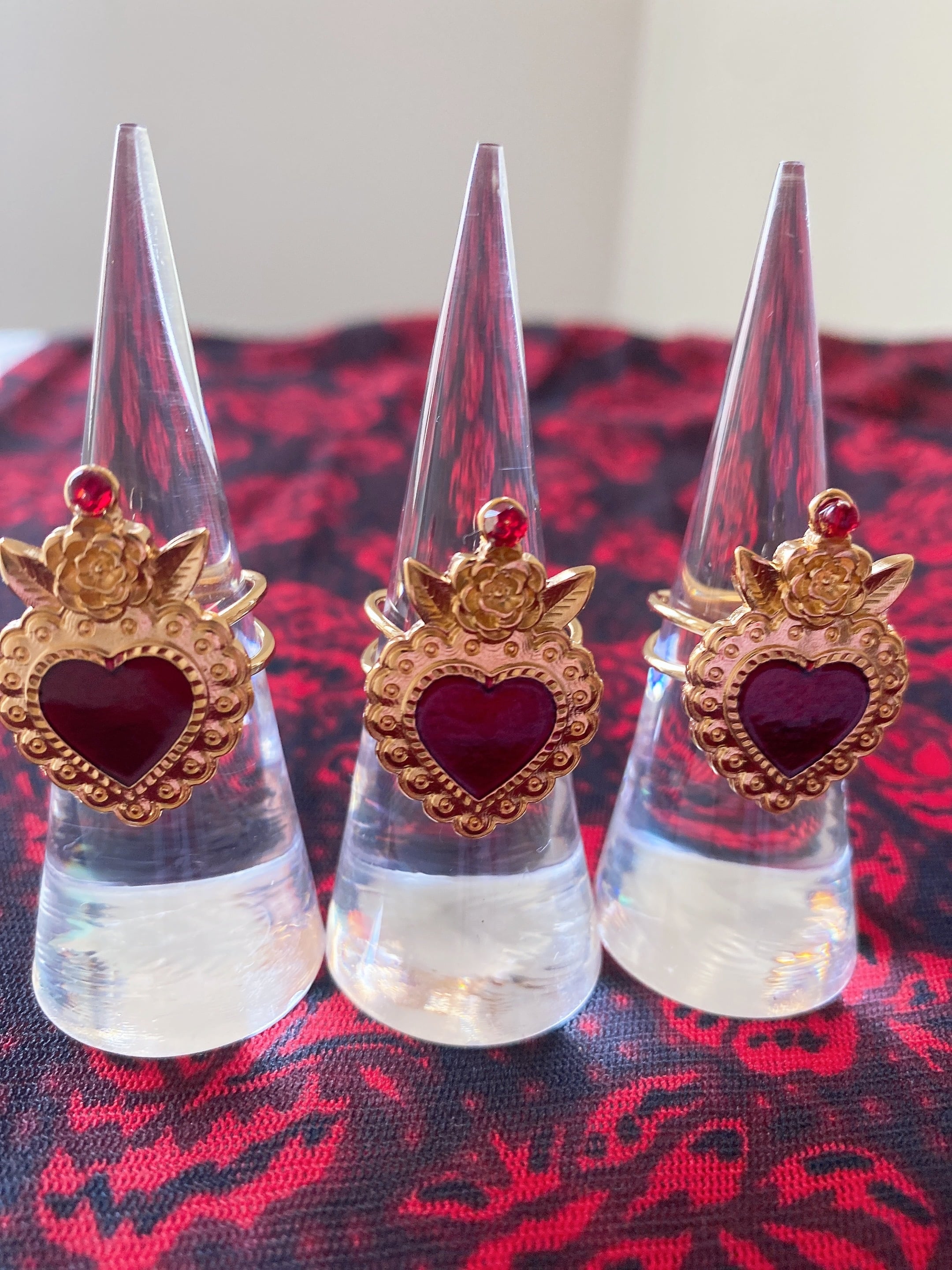 ギリシャ製のハートとローズのモチーフチャームに"シャム"というクリスタルガラスを1粒合わせました。