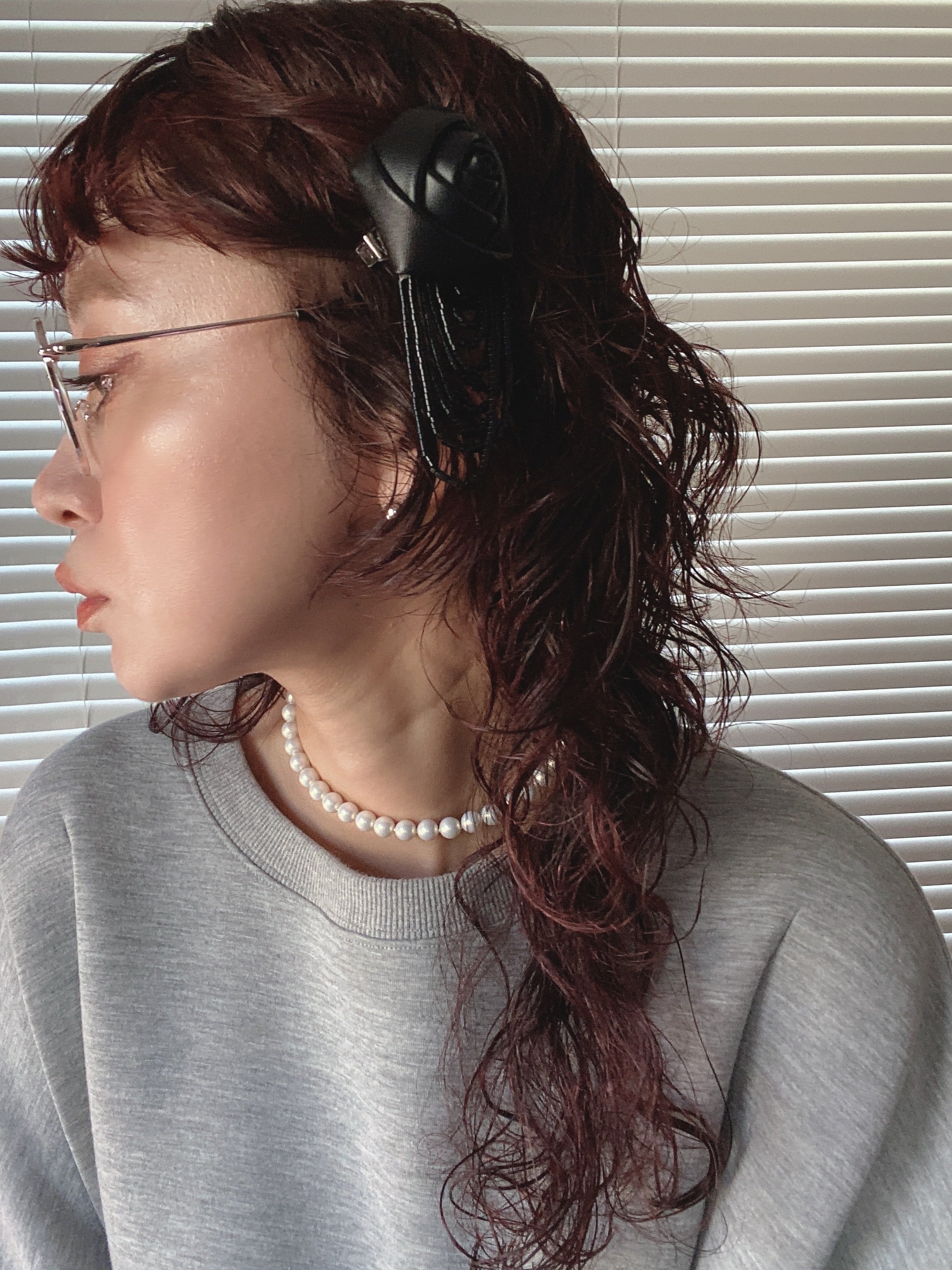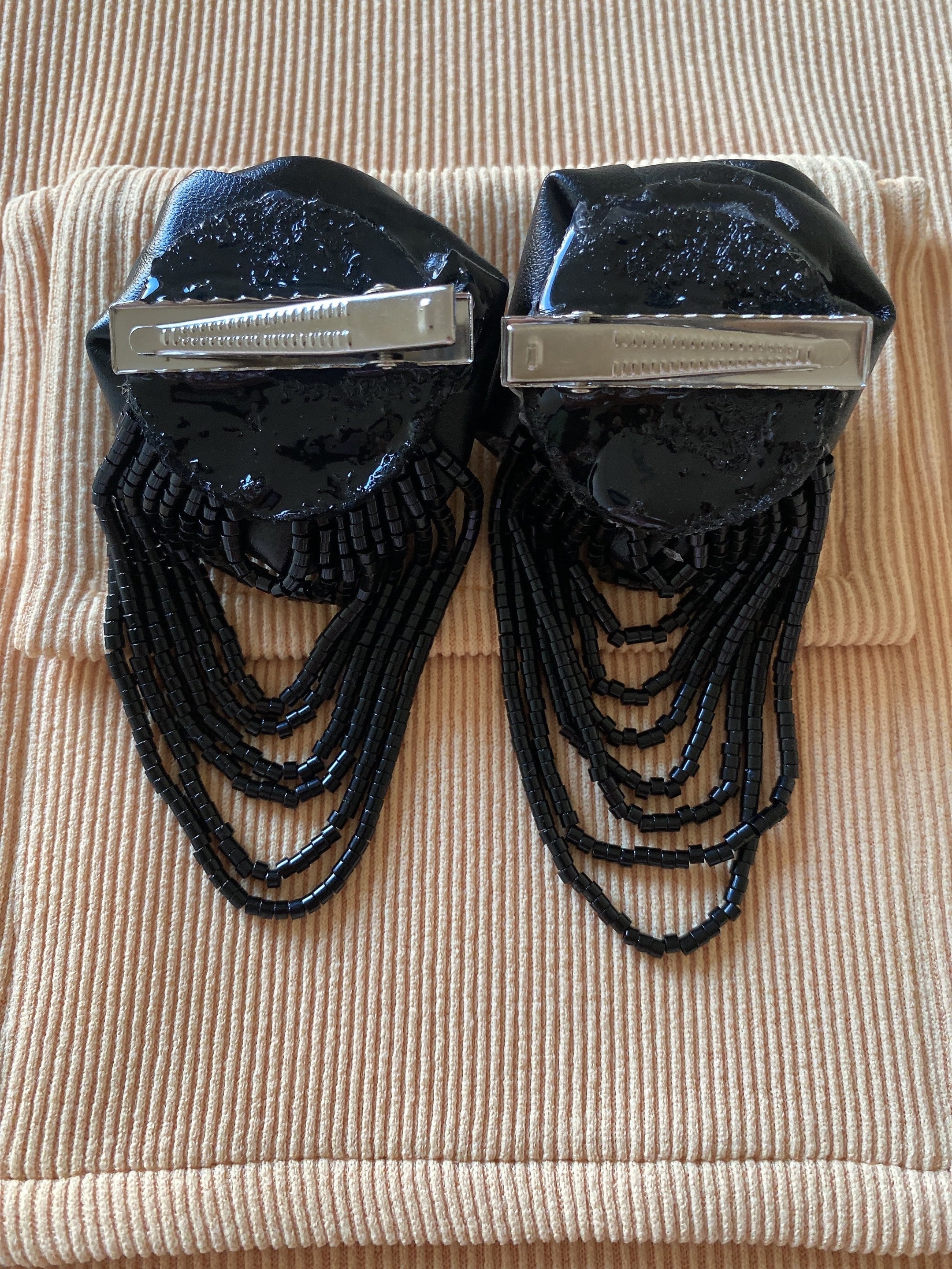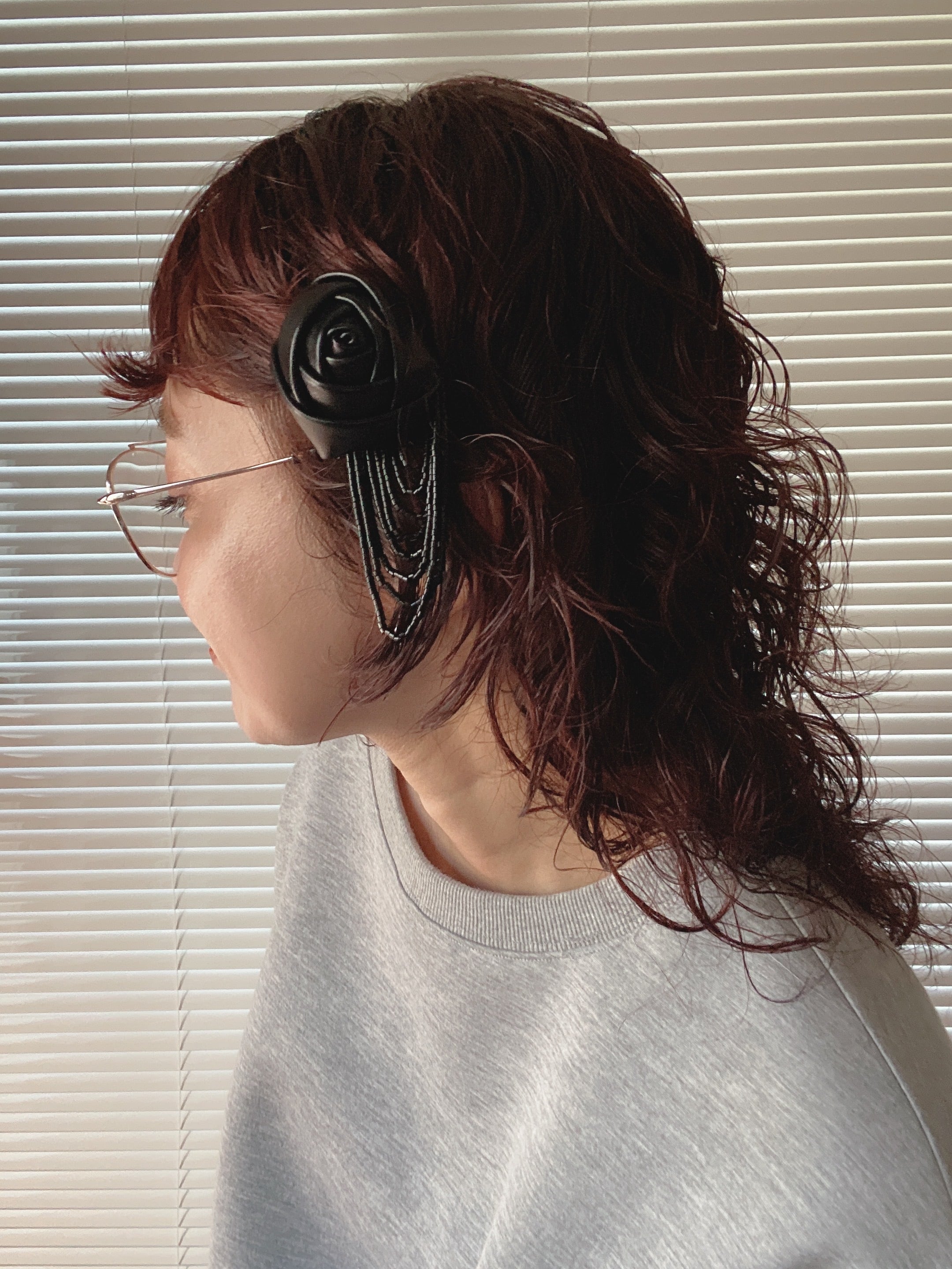 Fake leather rose ×beads tassel mini hair clip(2つset)