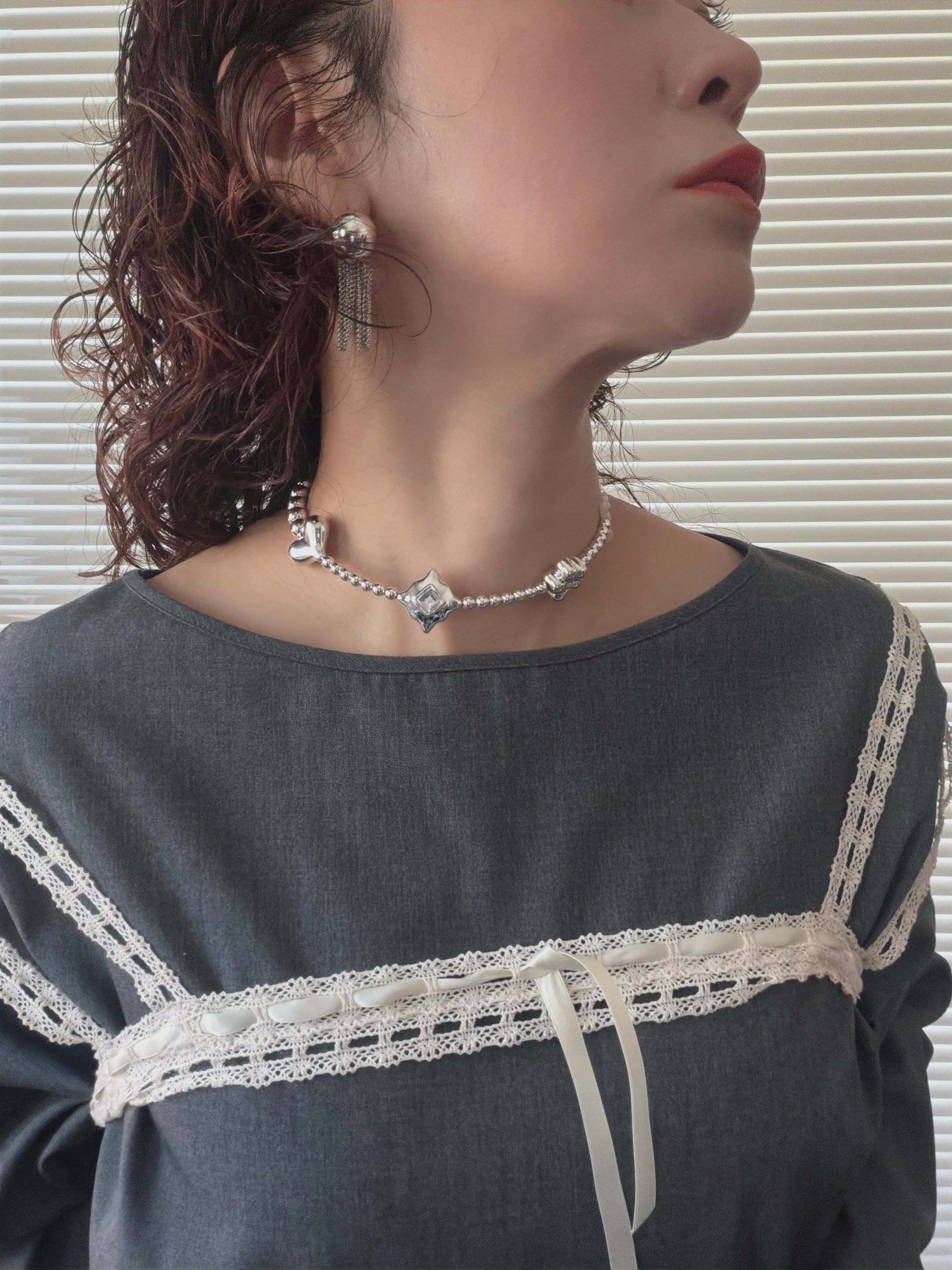 広げて着脱できる、楽ちんワイヤーチョーカ一です。