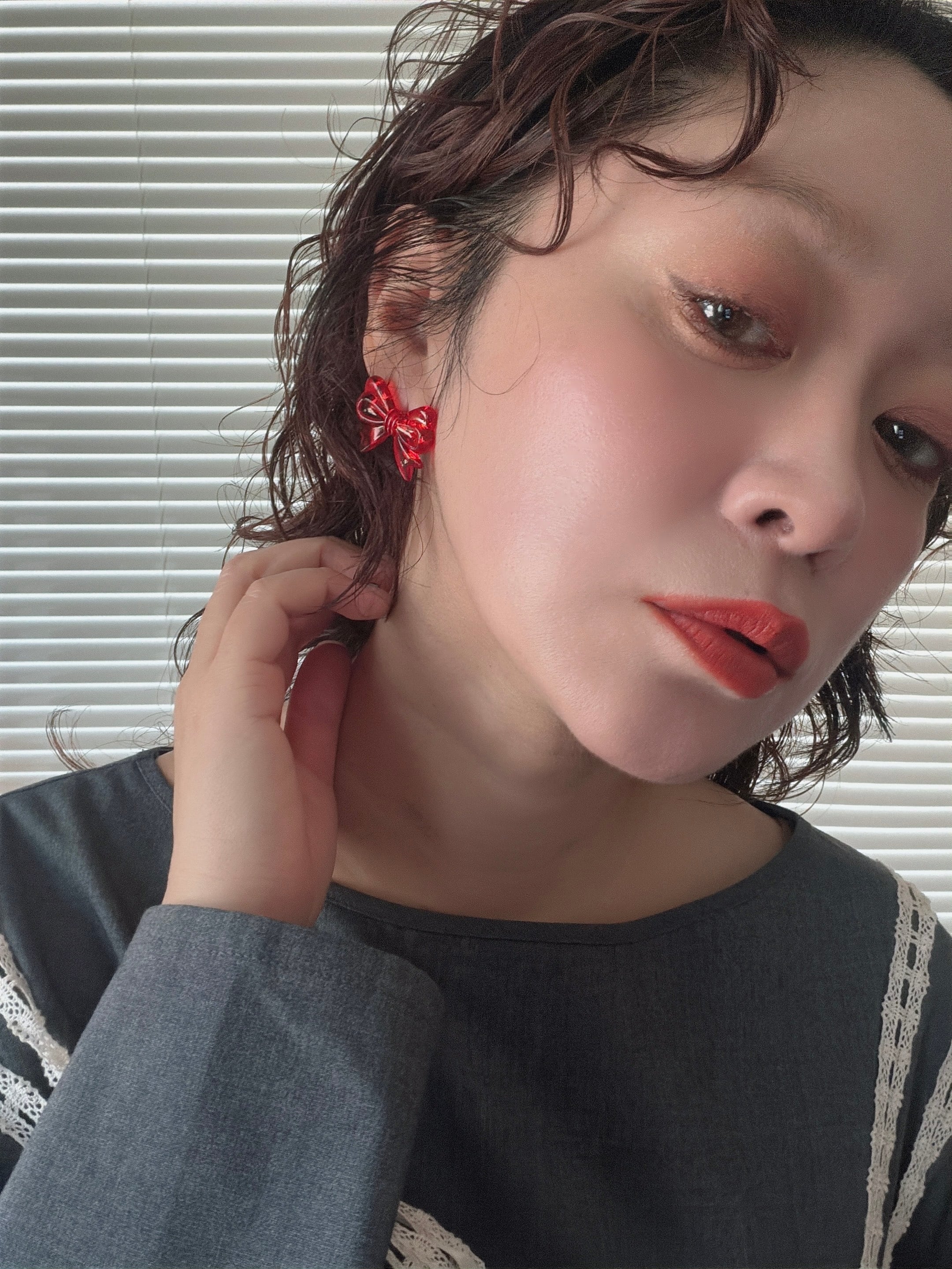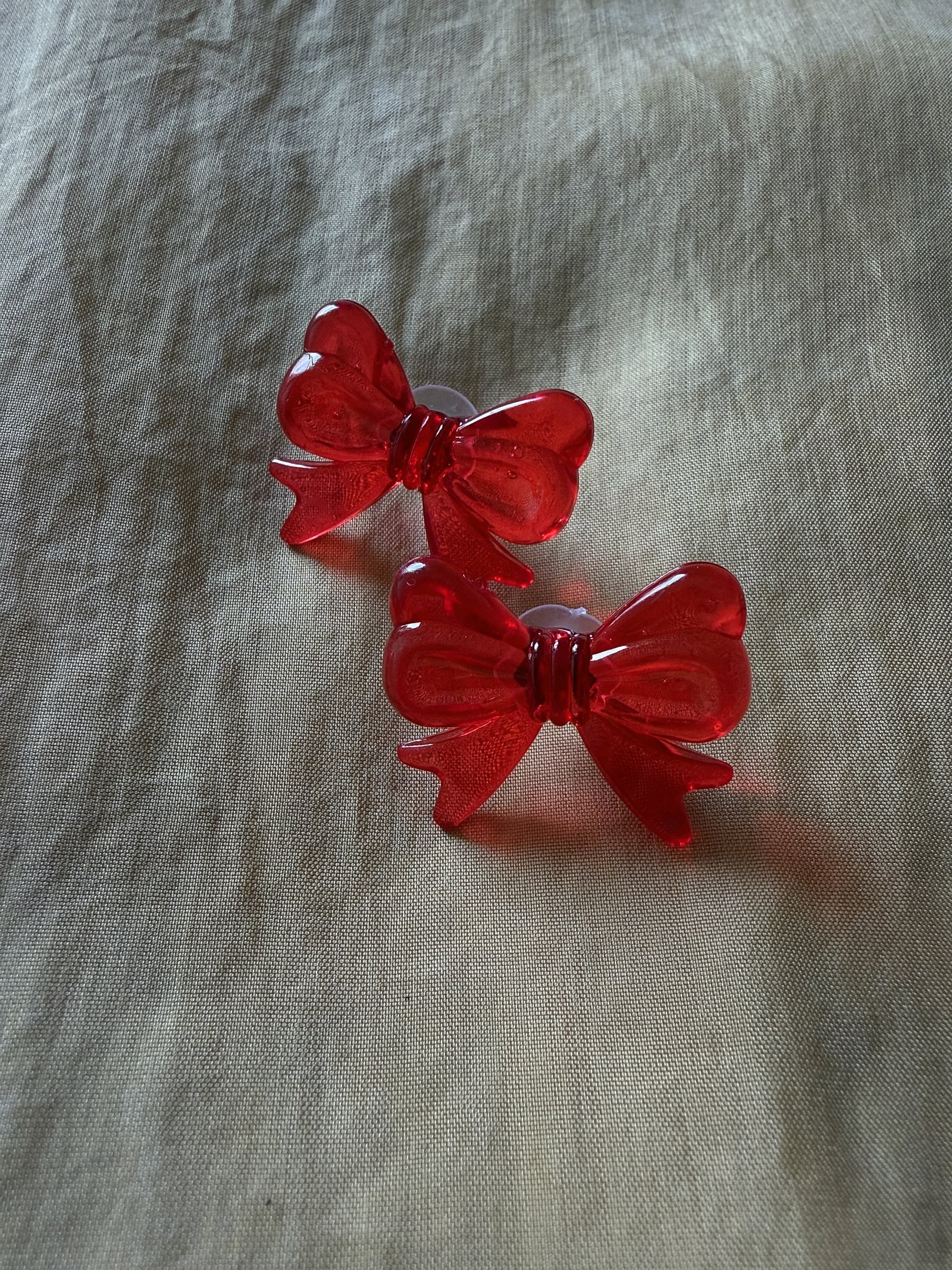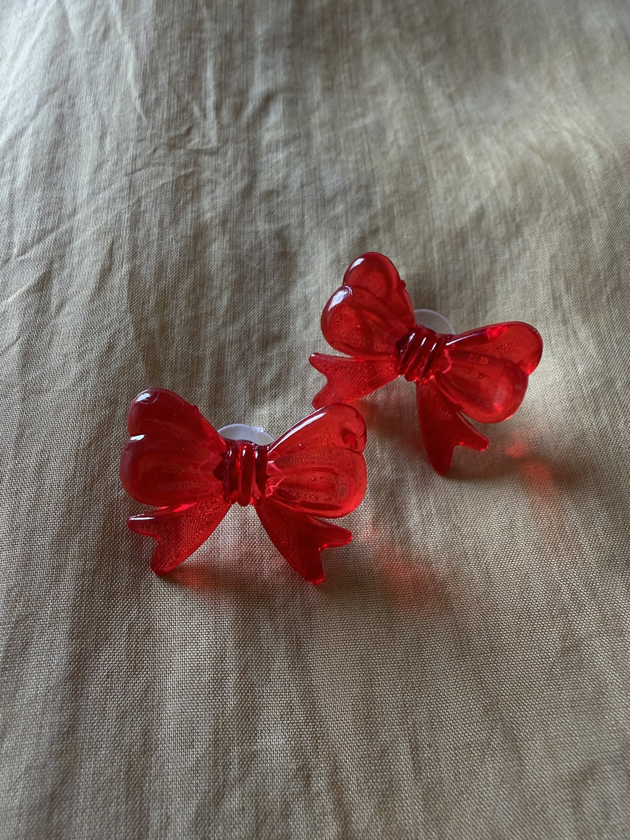 アクリル製で遊び心のあるあえてイージーなデザインのリボンを、ピアス/イヤリングにしました。