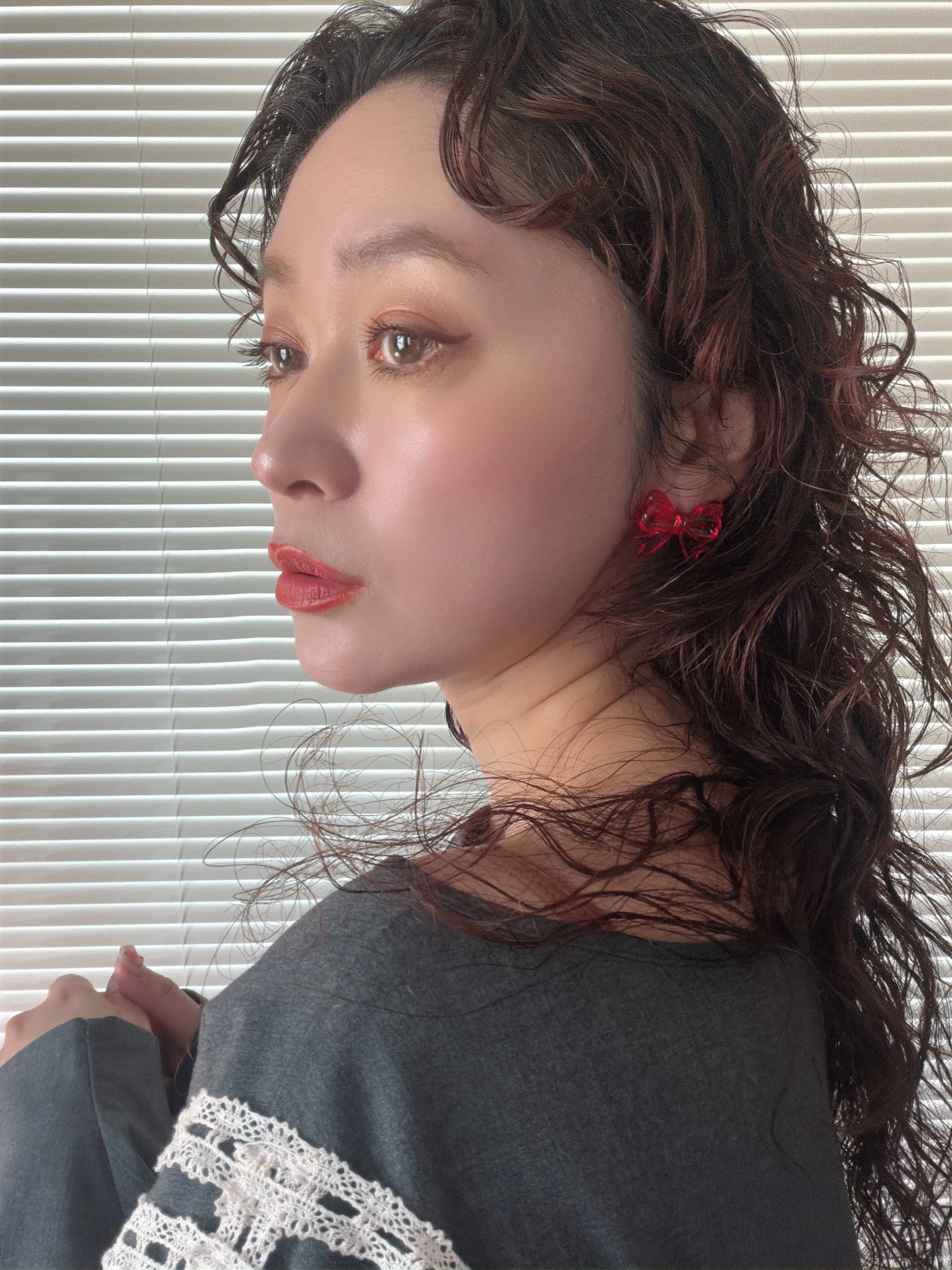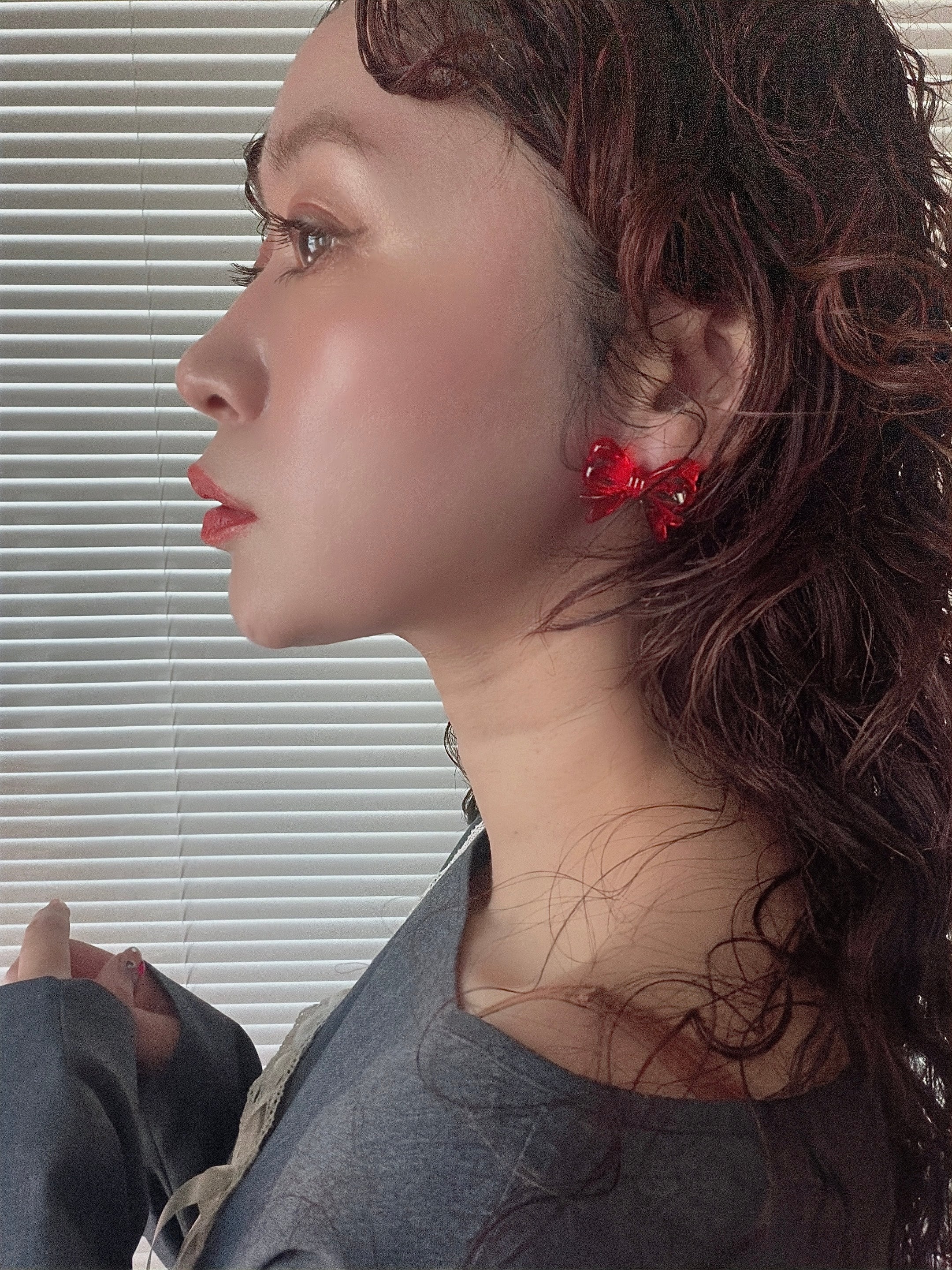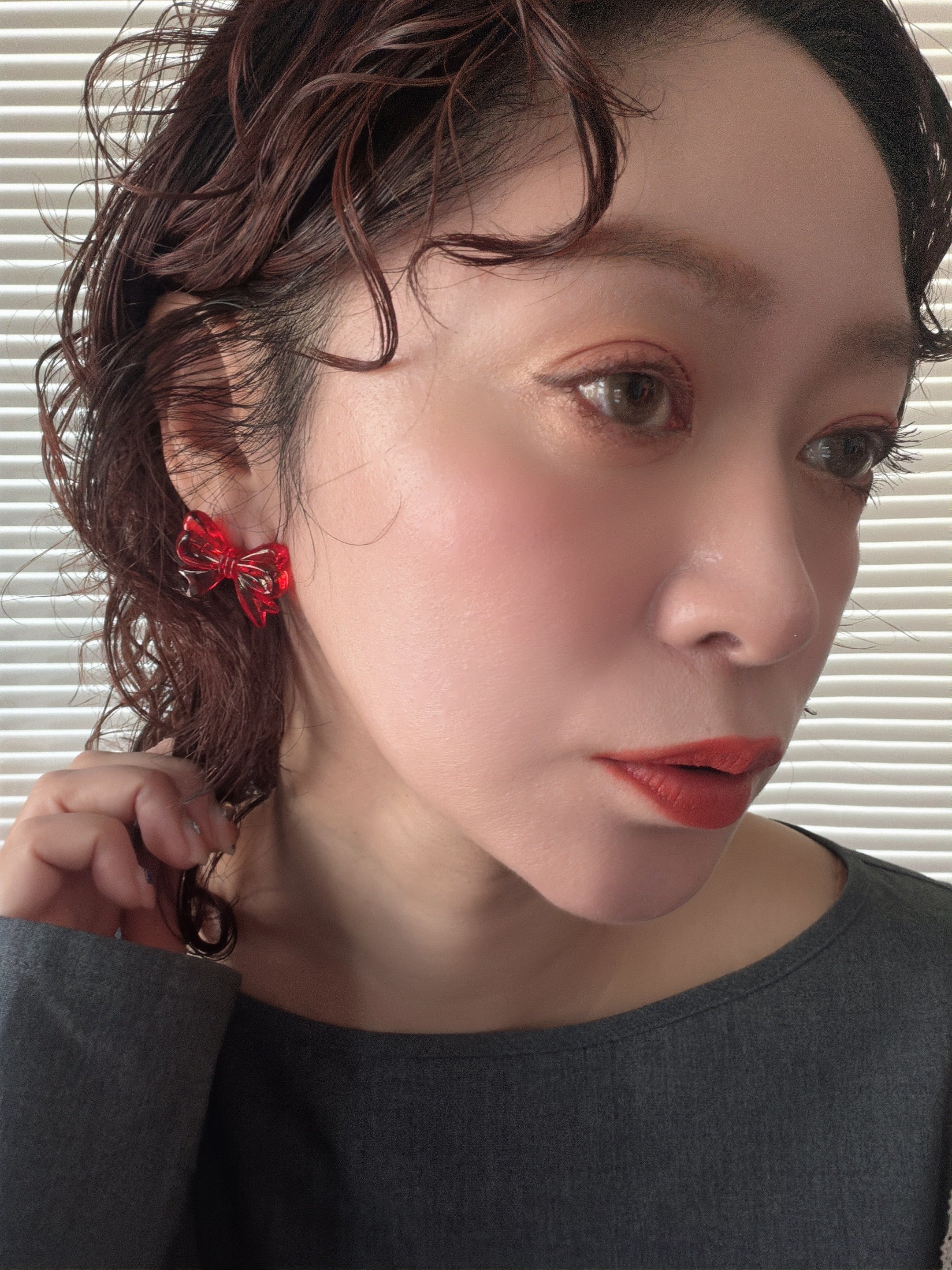 アクリル製で遊び心のあるあえてイージーなデザインのリボンを、ピアス/イヤリングにしました。