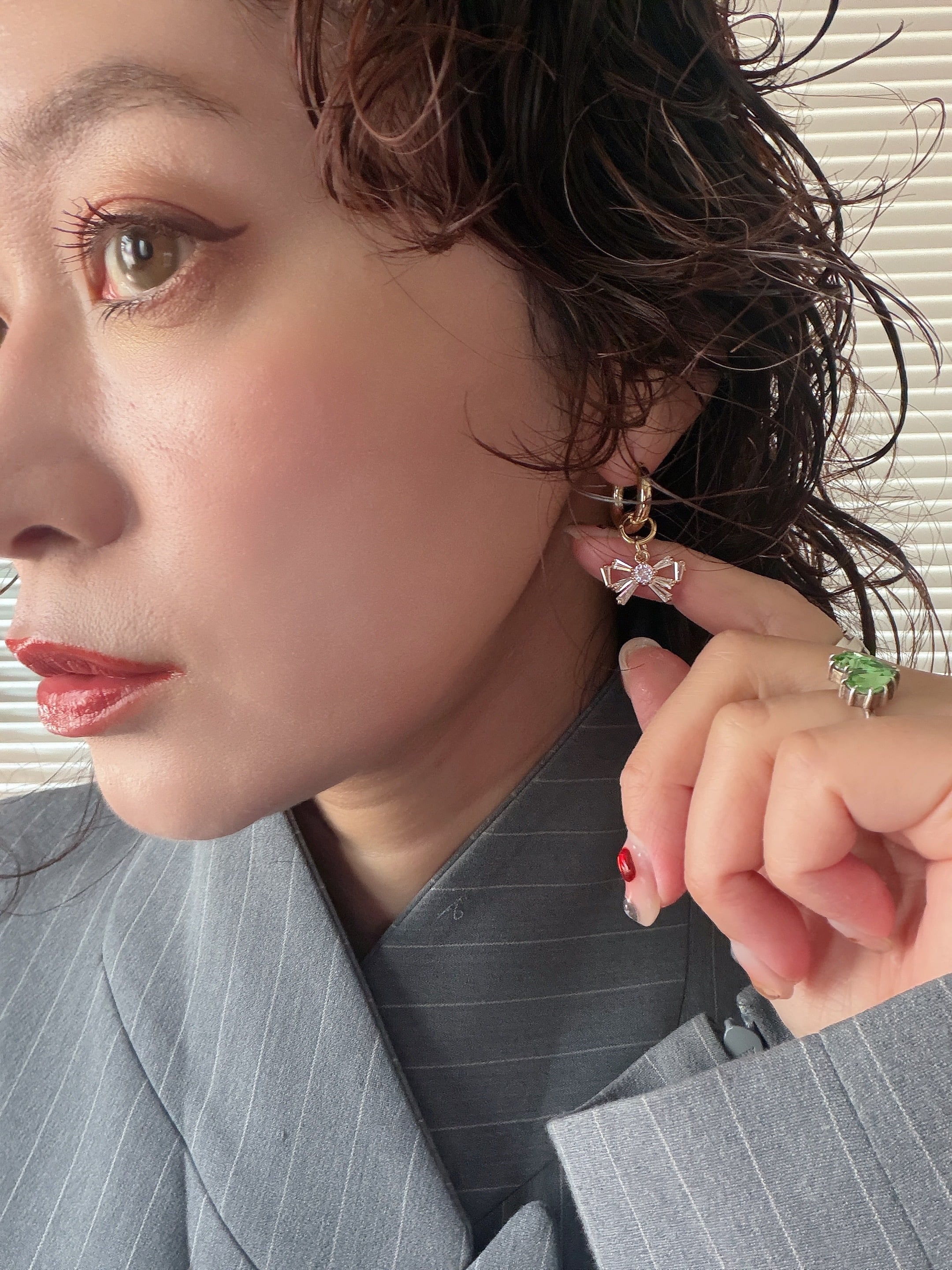 2wayタイプなのでリボンチャームが簡単にお取り外しができ、フープピアスのみでも使用できます。