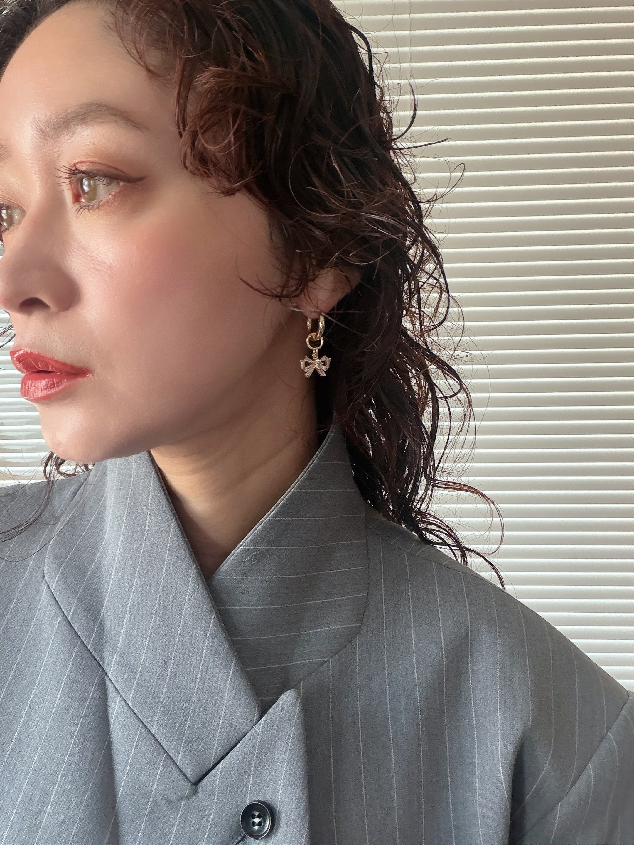 hoopチタンピアス×gold ribbon bijou charm 2way