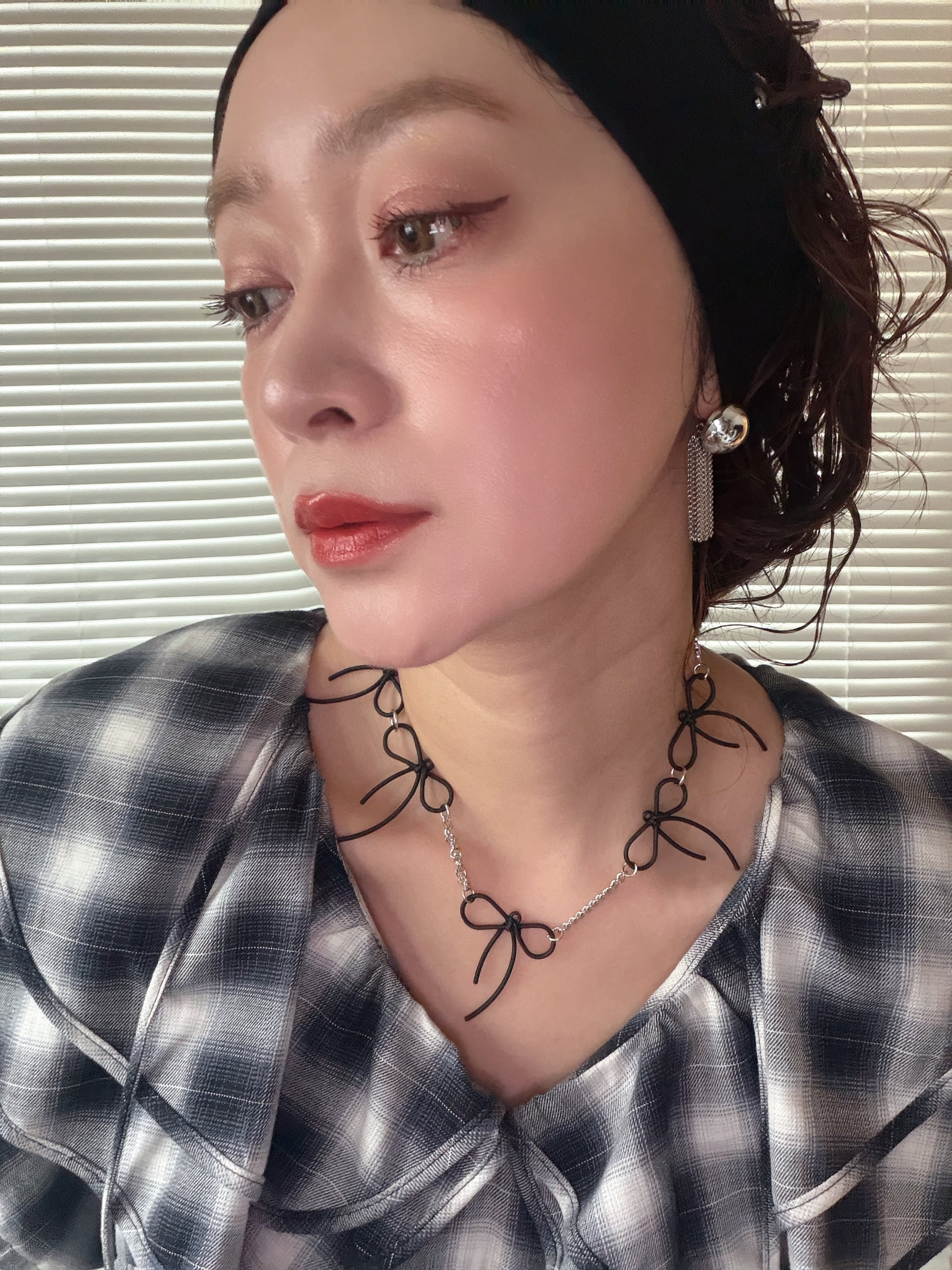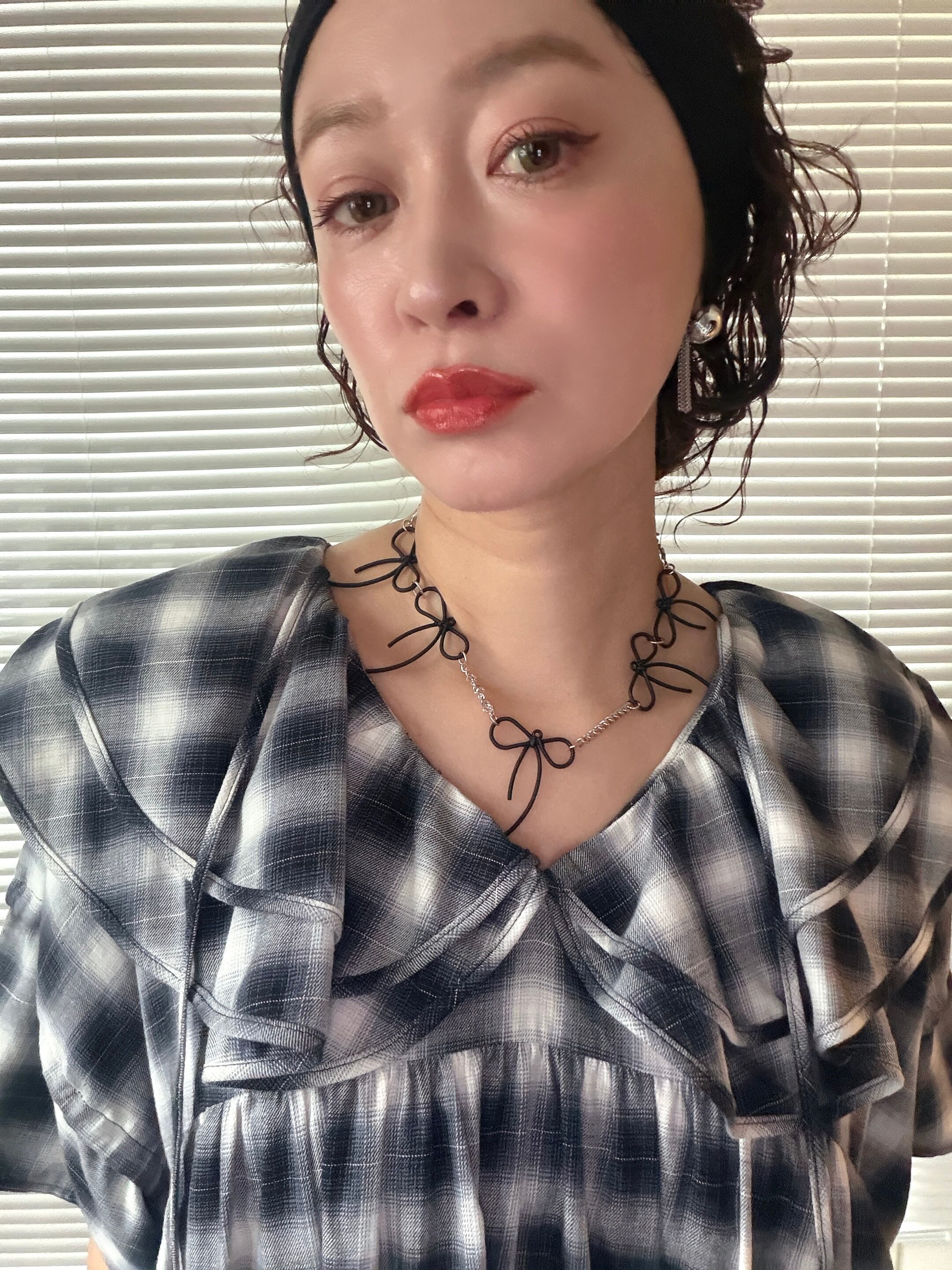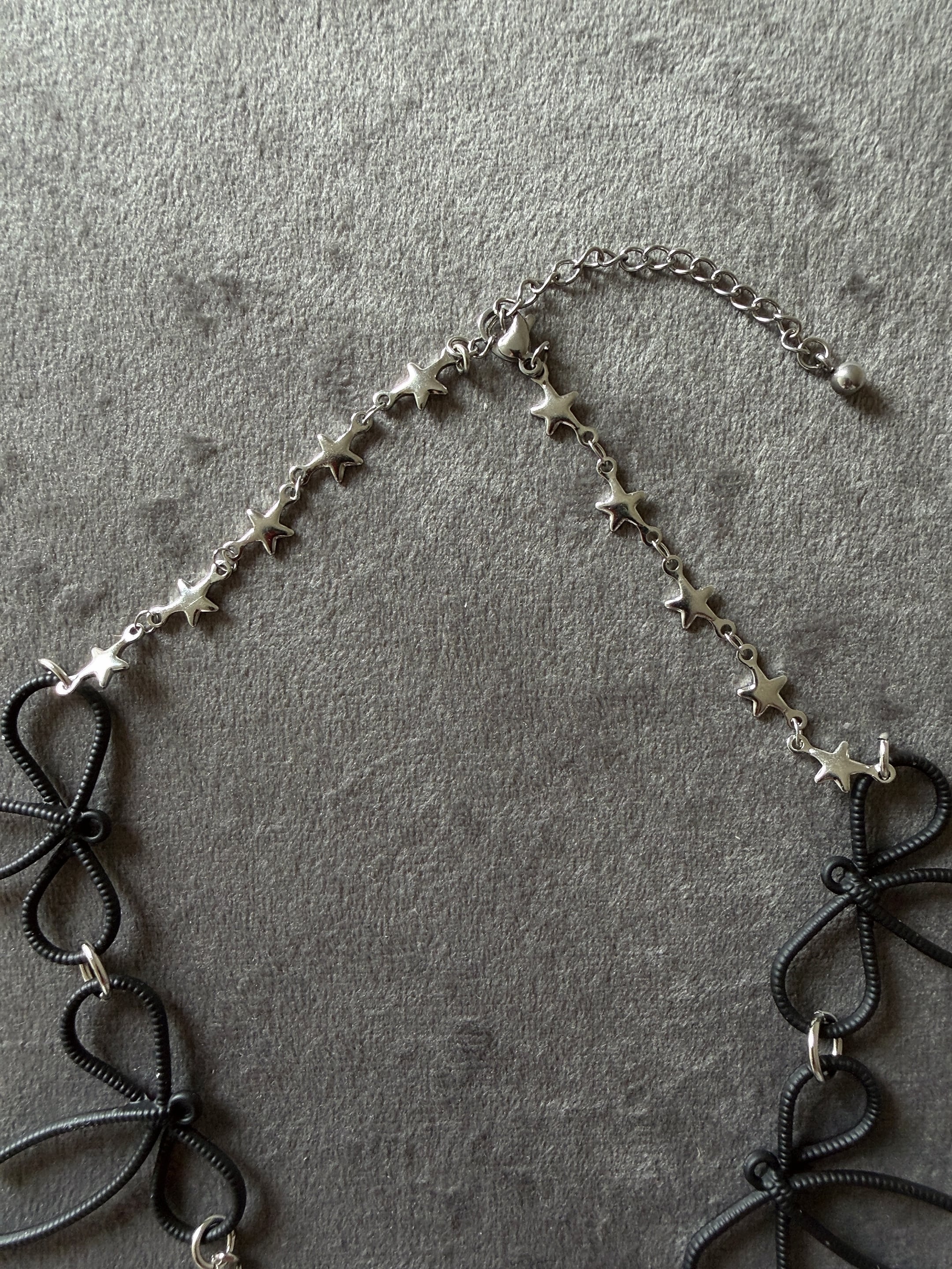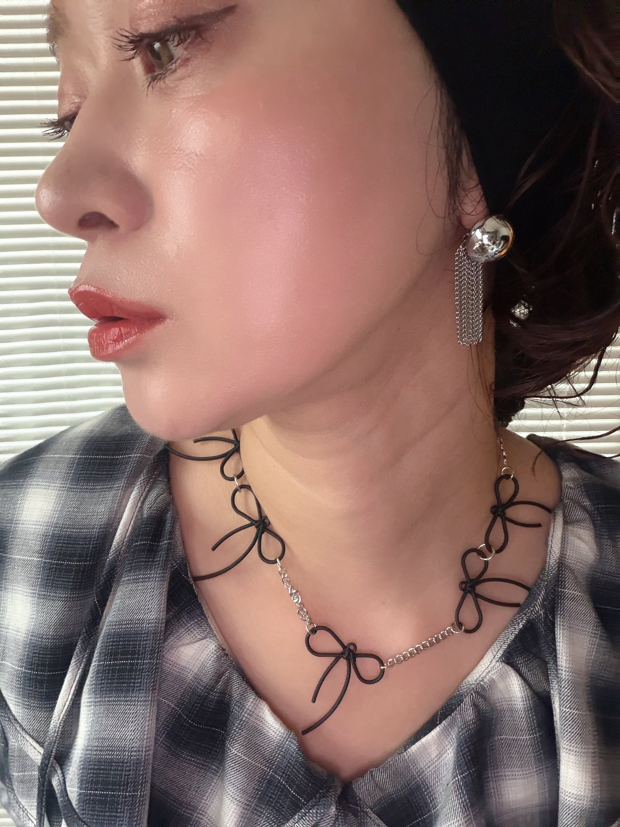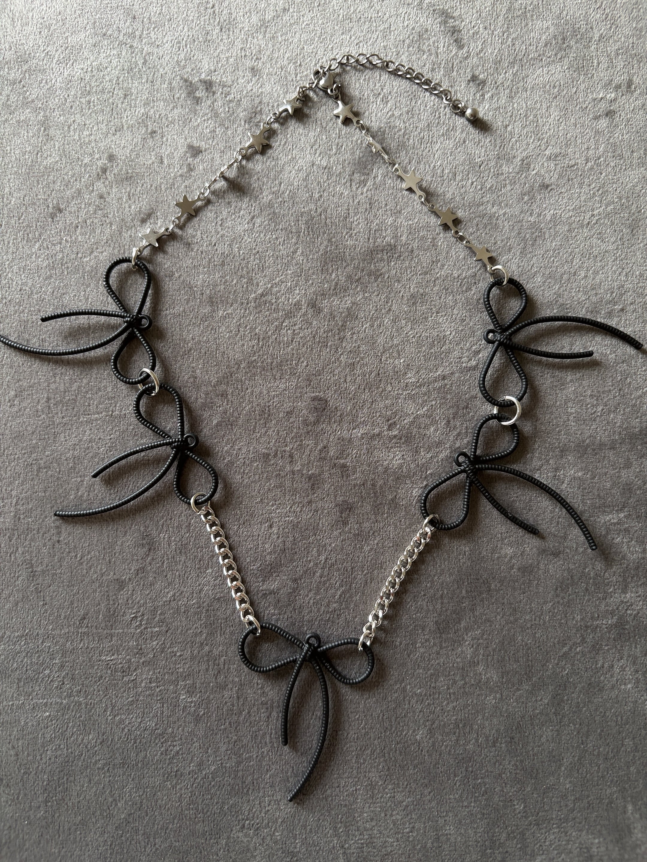 Romantic Ribbon Necklace(40cm)(silver×black)