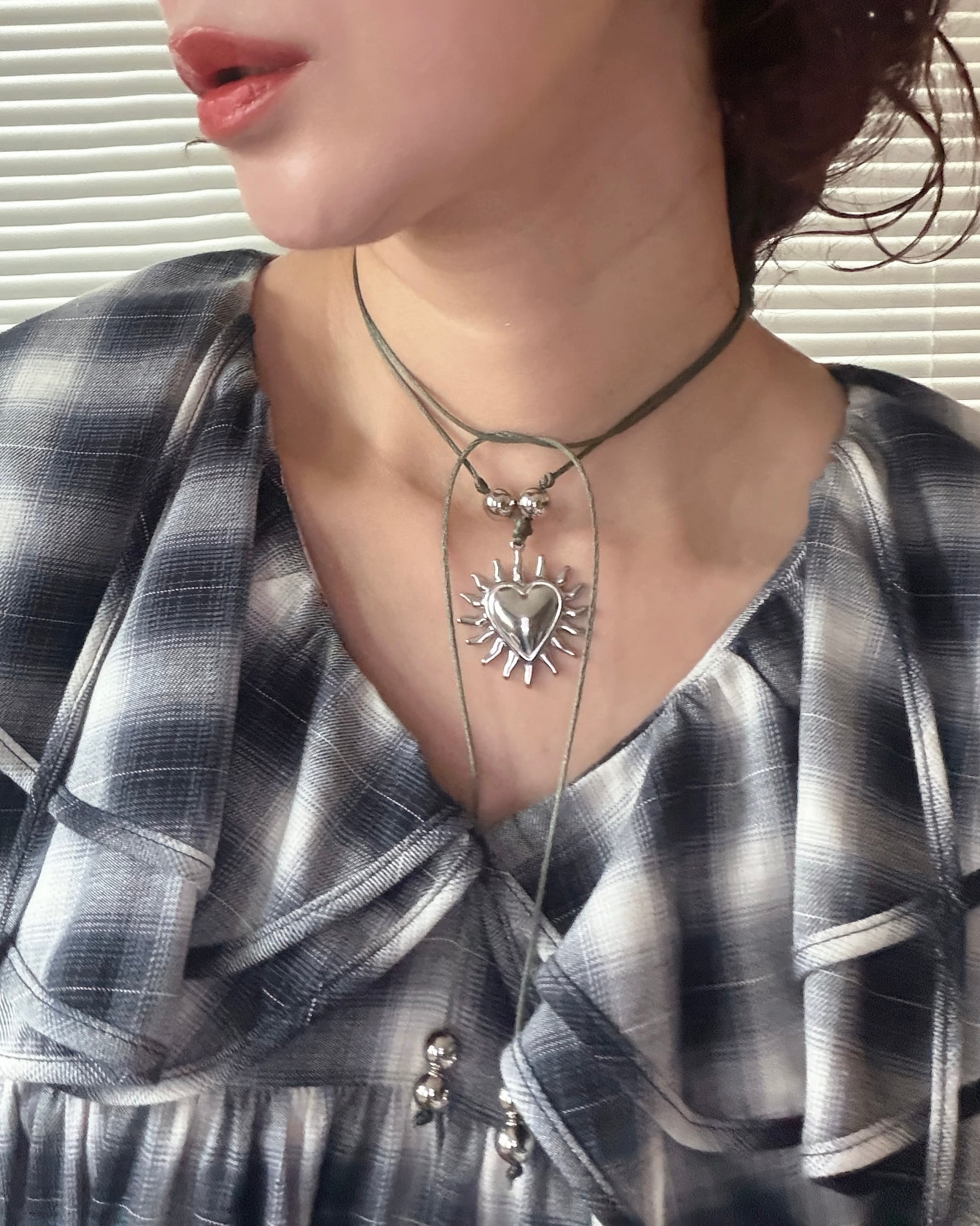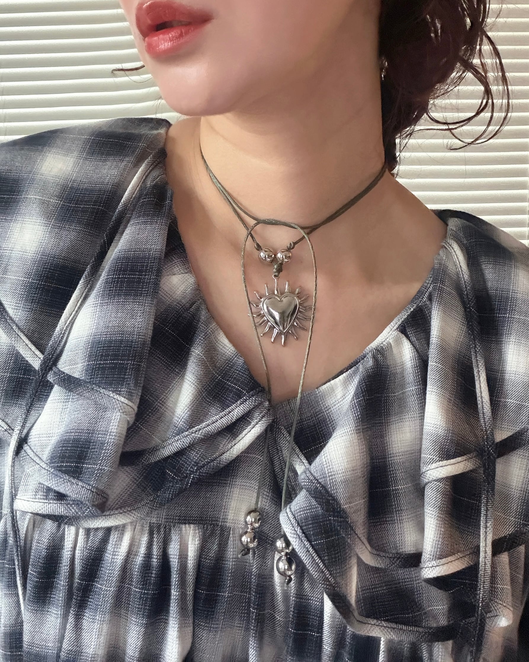 Burning heart×khaki satin code choker (105cm)