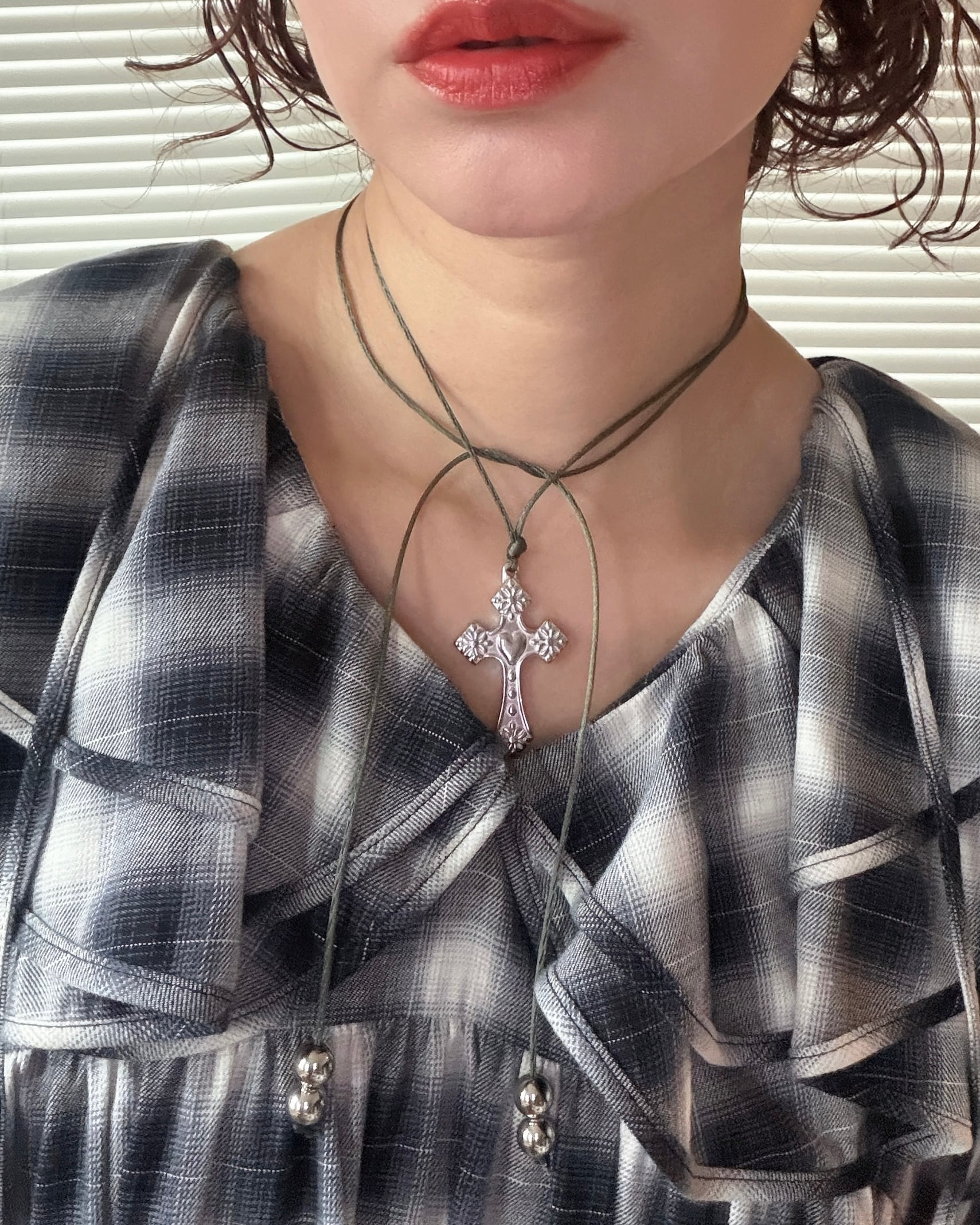Flower cross×khaki satin code choker(110cm)