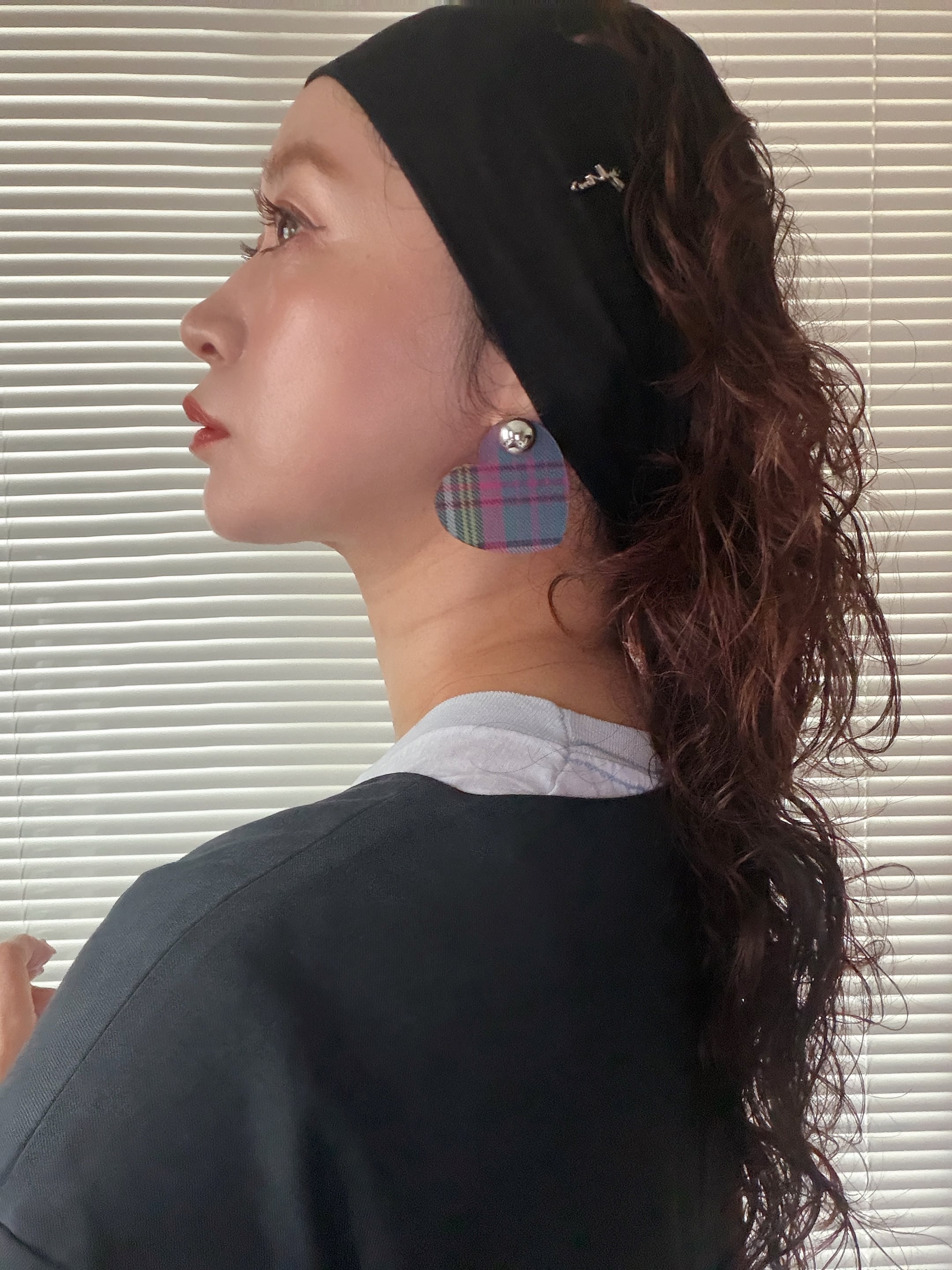 Acryl heart check pattern サージカルステンレスピアス/ネジ式イヤリング (pink/ beige)