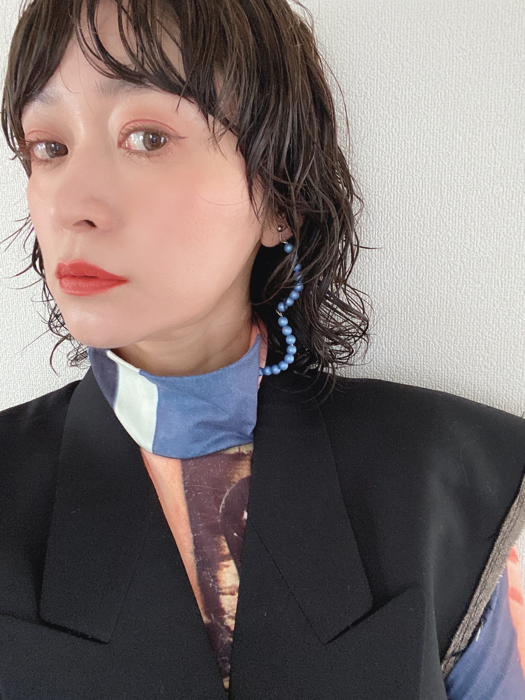 dull blue beads wavyサージカルステンレスピアス/ネジ式イヤリング