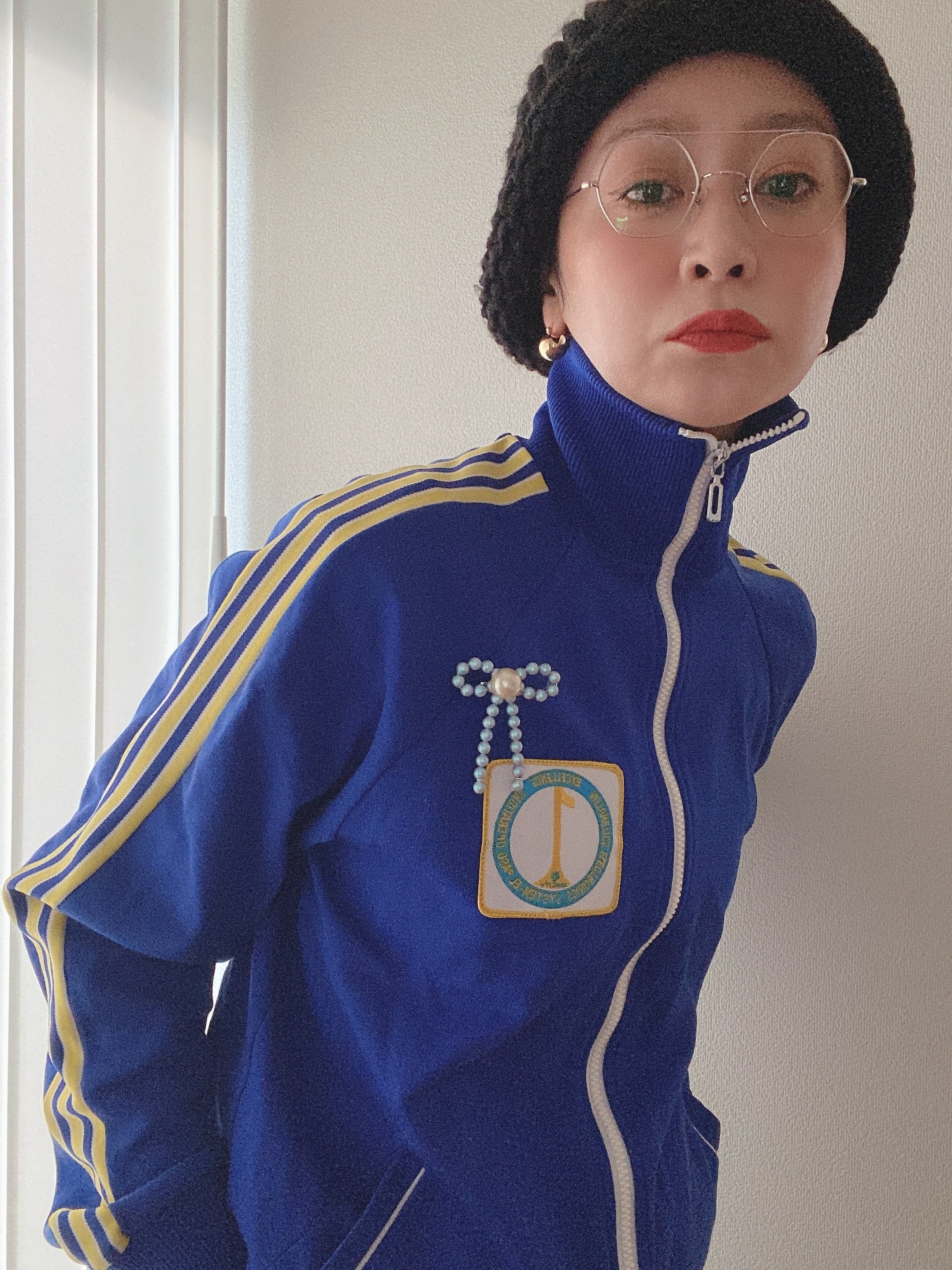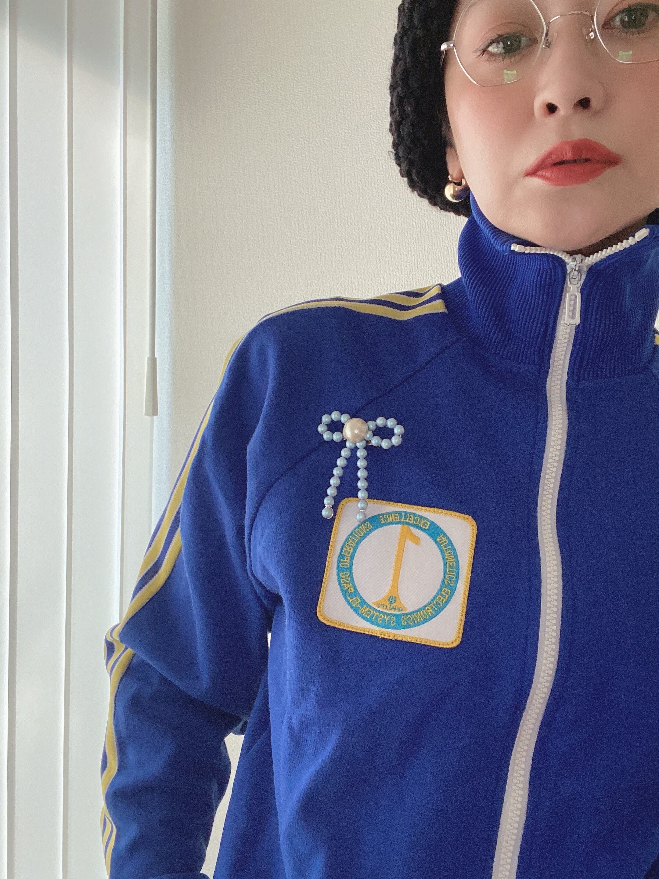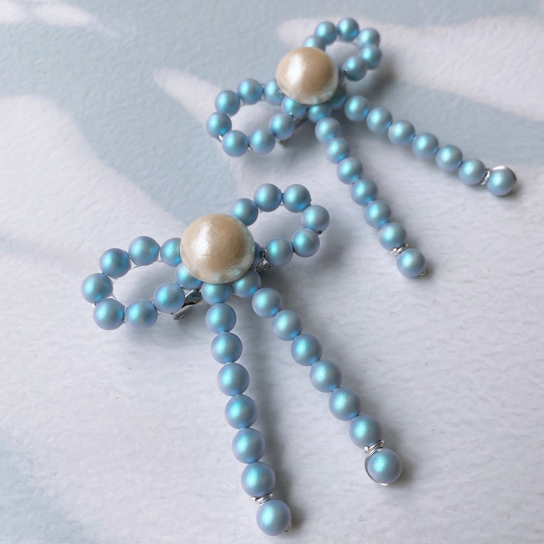Crystal glass beads × cotton pearl ribbon brooch(一つ売り)