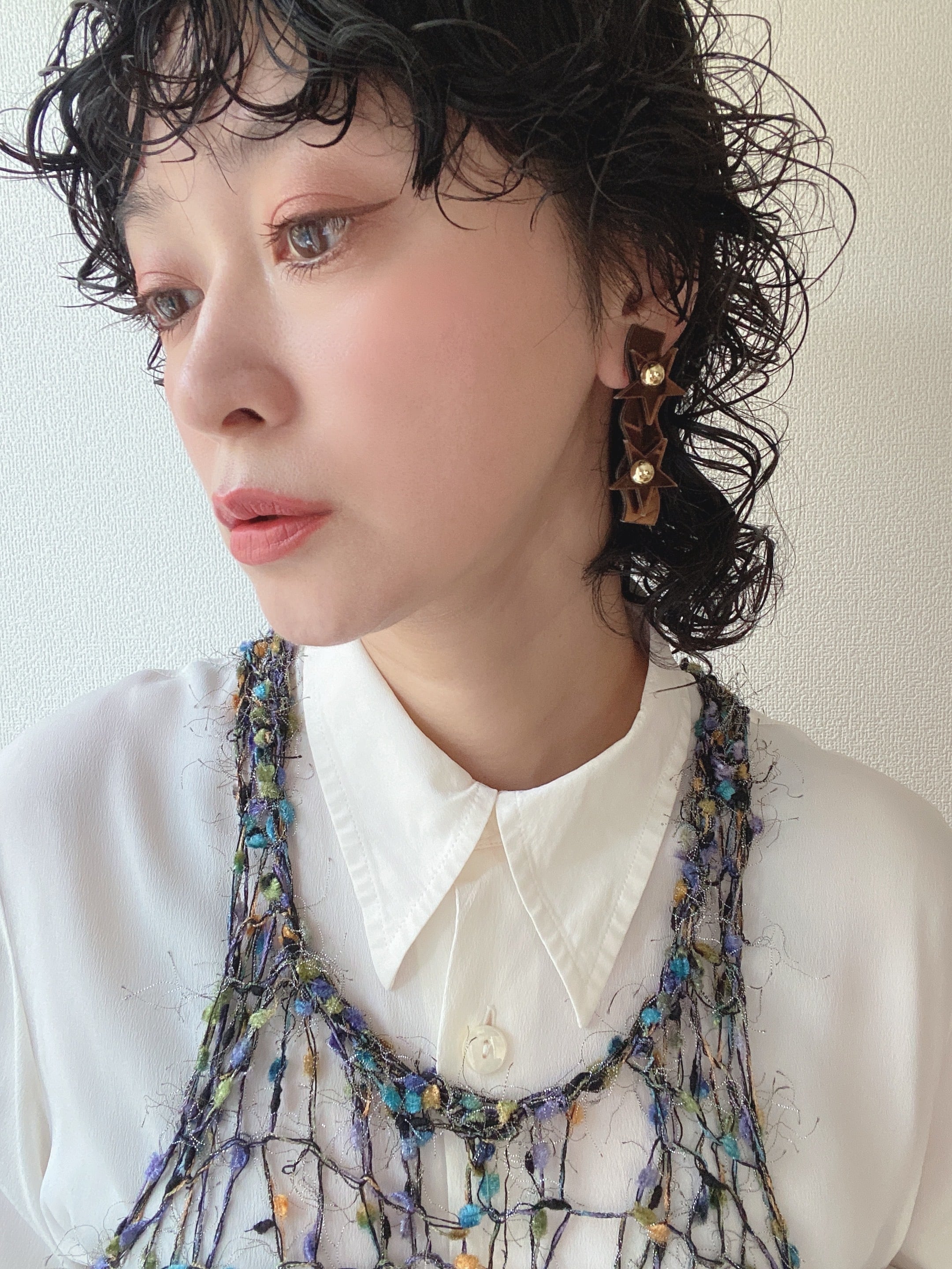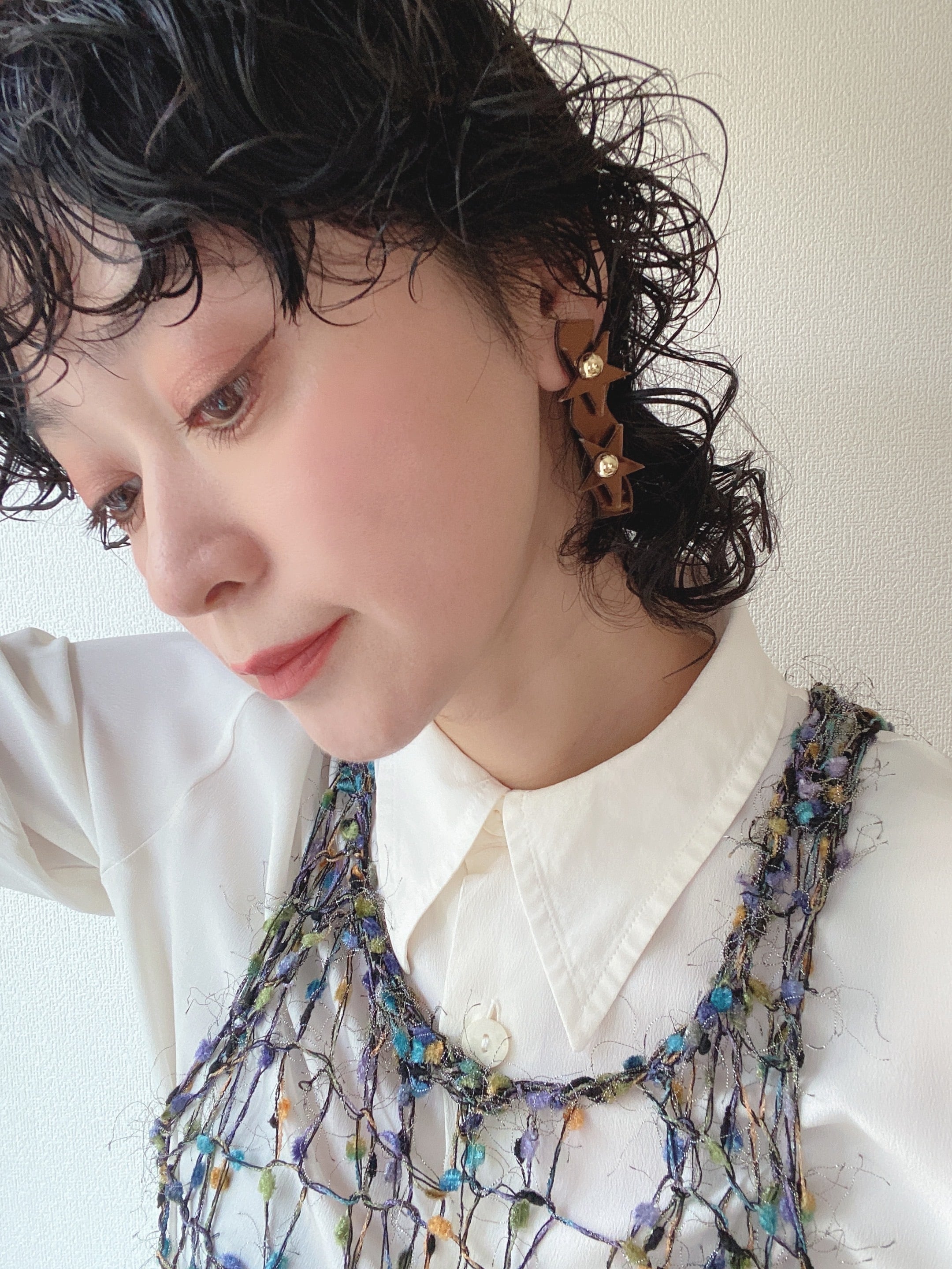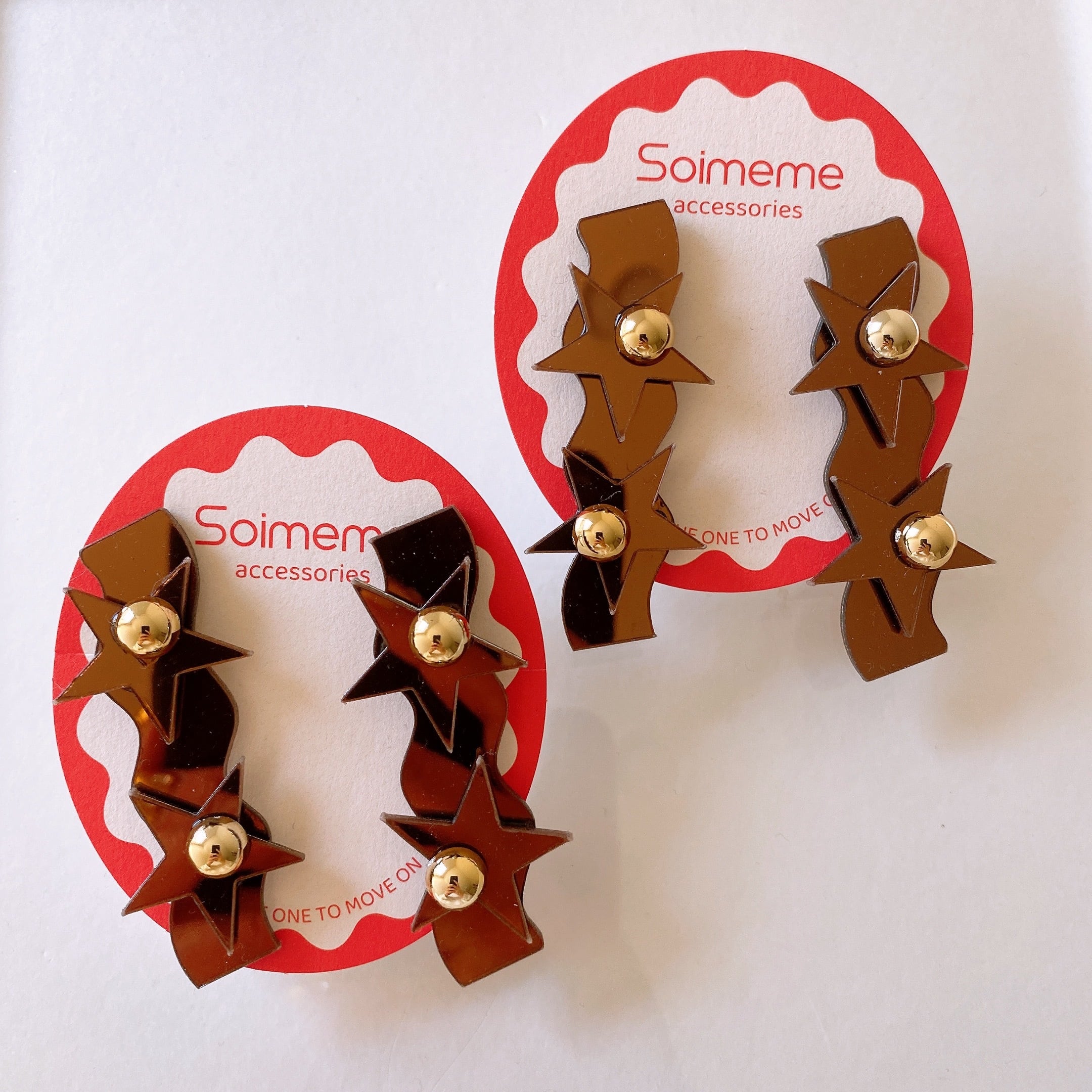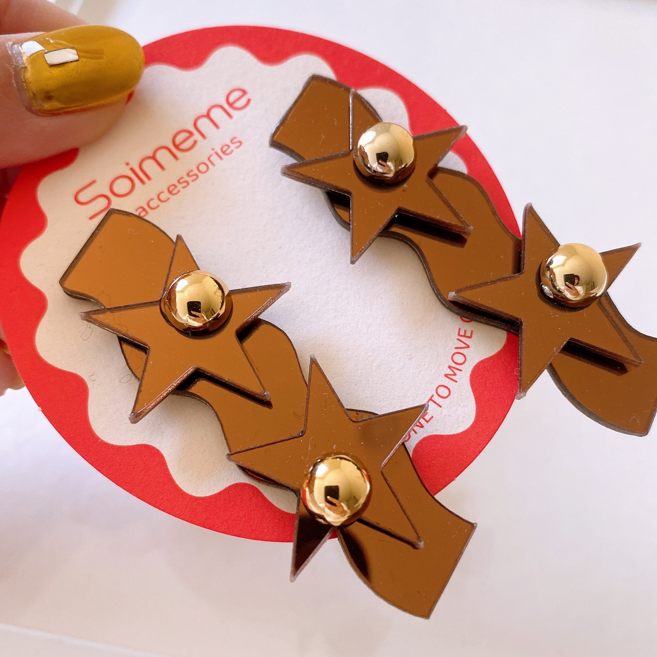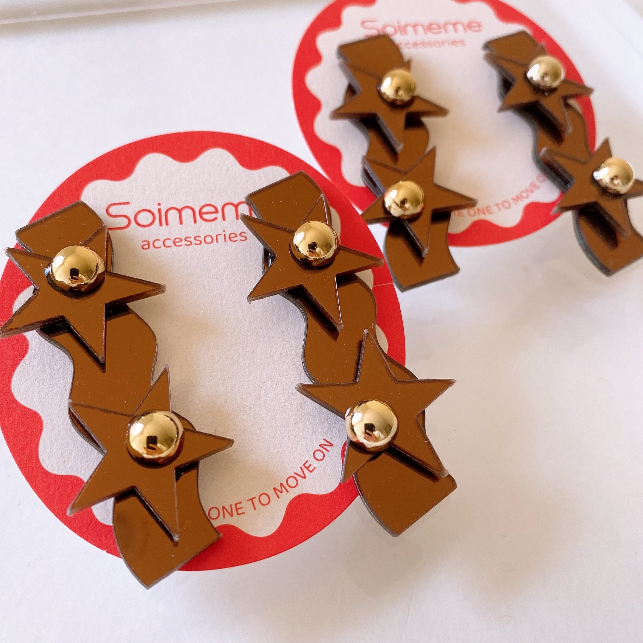 metallic brown star design /ネジ式イヤリング