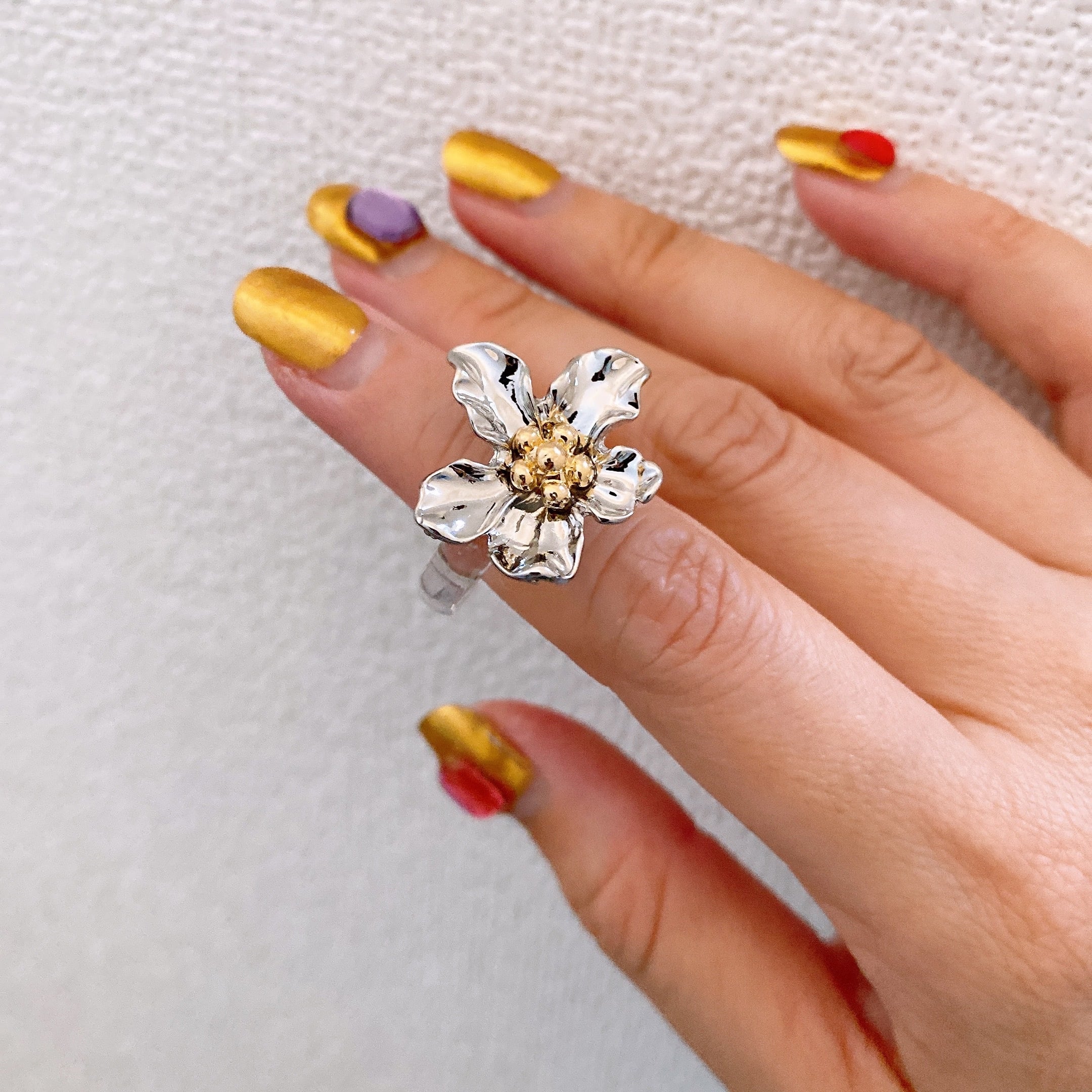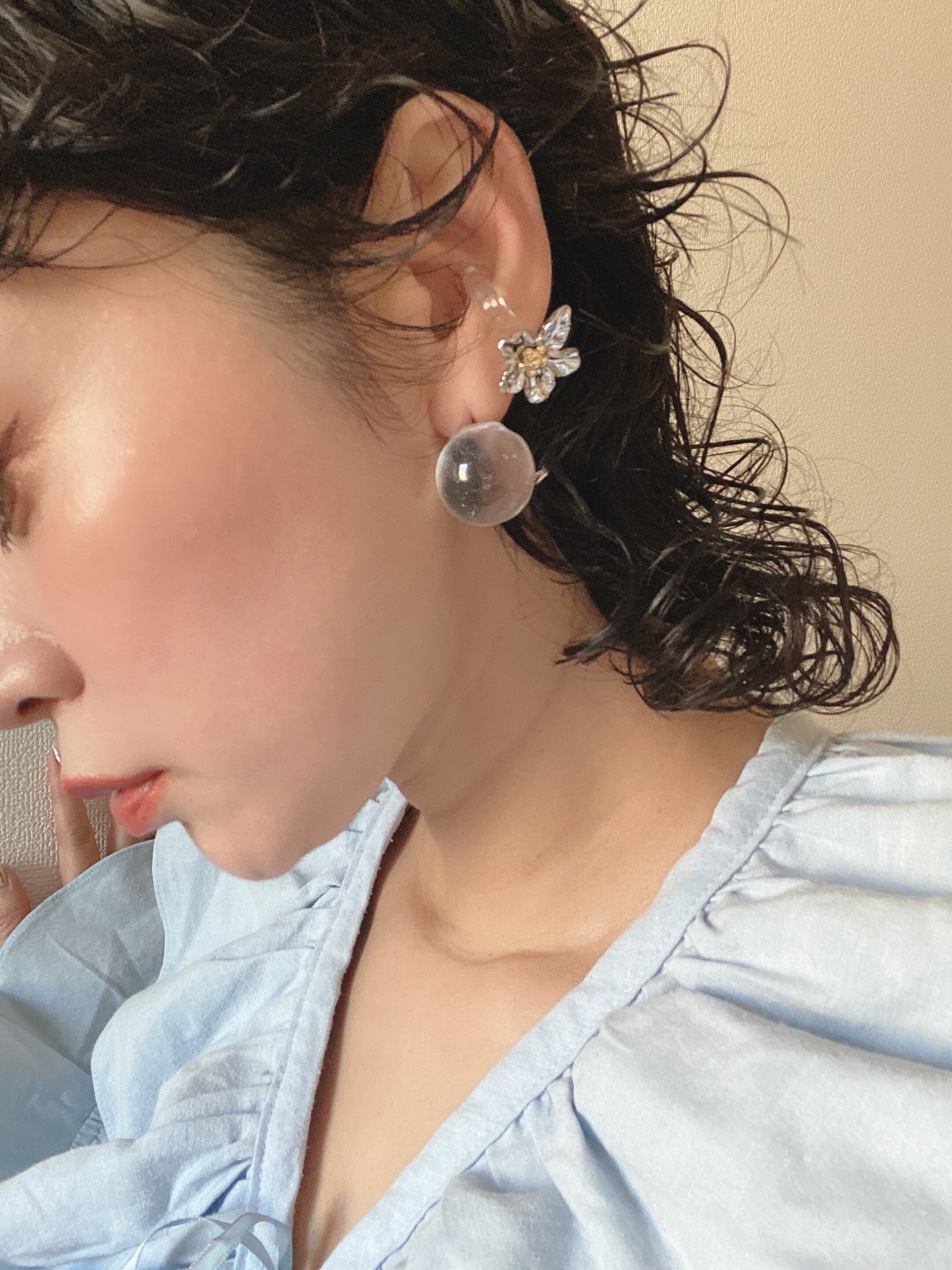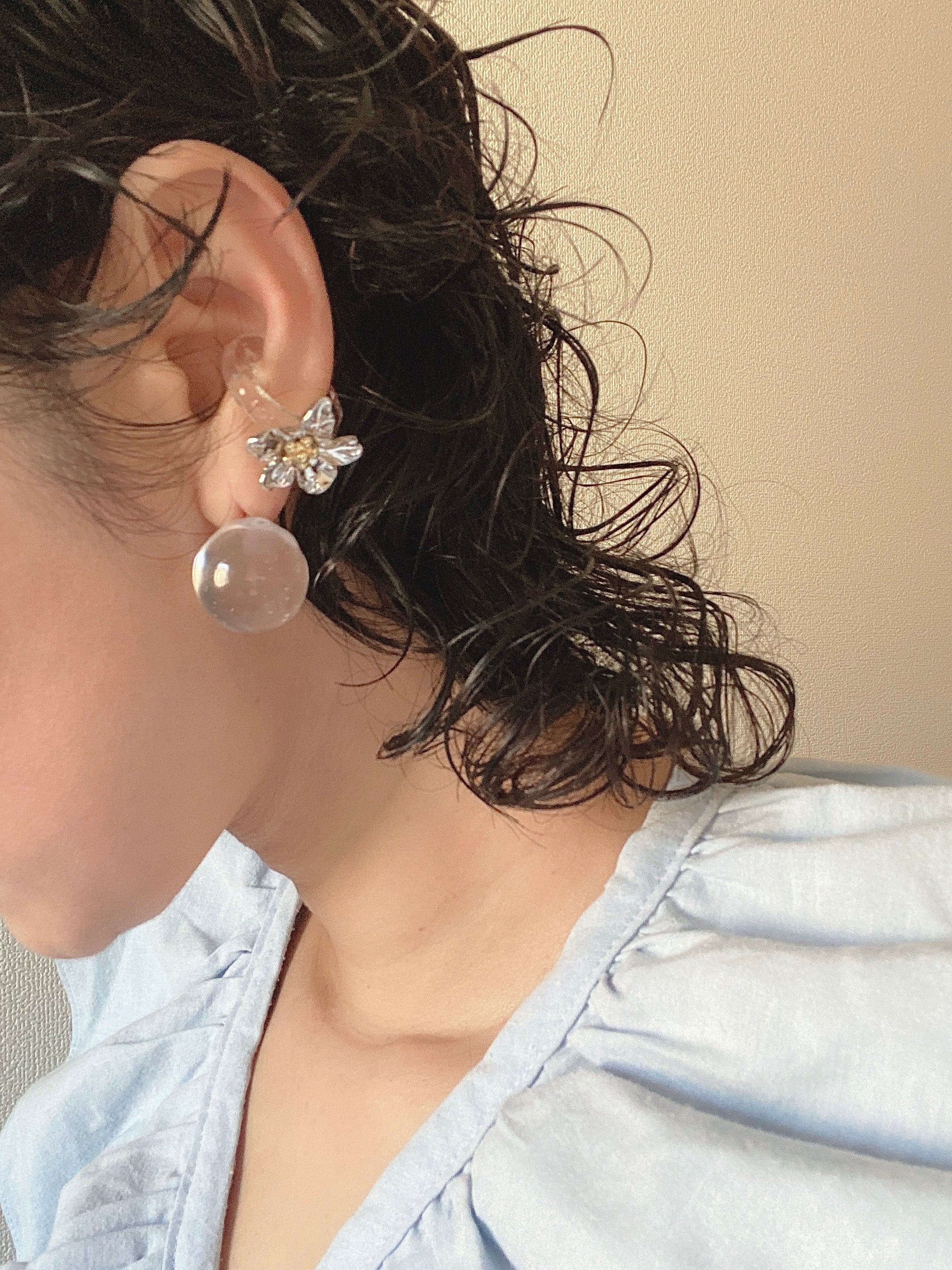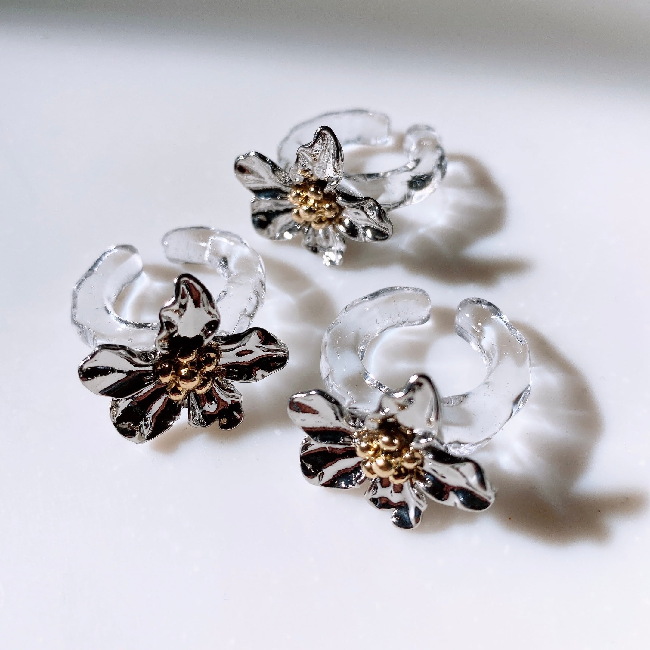 silver×gold flower clear mini ear cuff(お一つ売り)