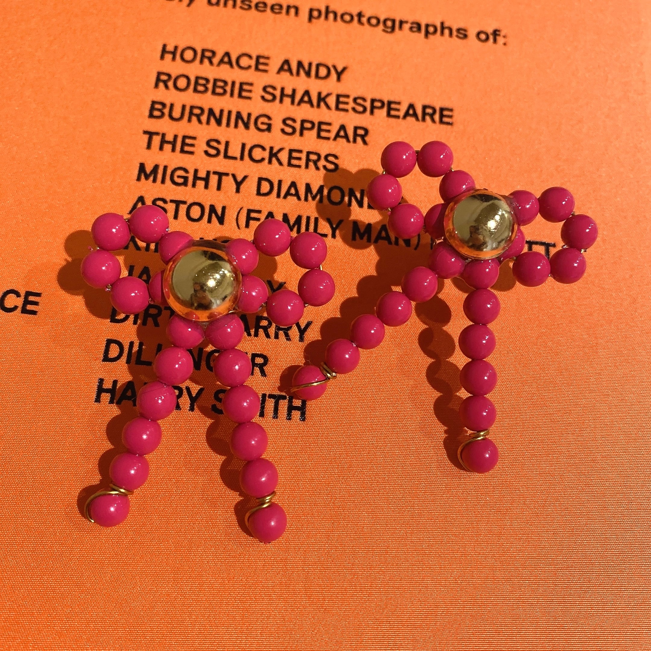 Rose cherry ribbon(medium)サージカルステンレスピアス/ネジ式イヤリング